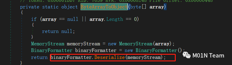 该类get_Method 方法会直接调用BinaryFormater.Deserialize(),但序列化链使用需要满足两个条件。