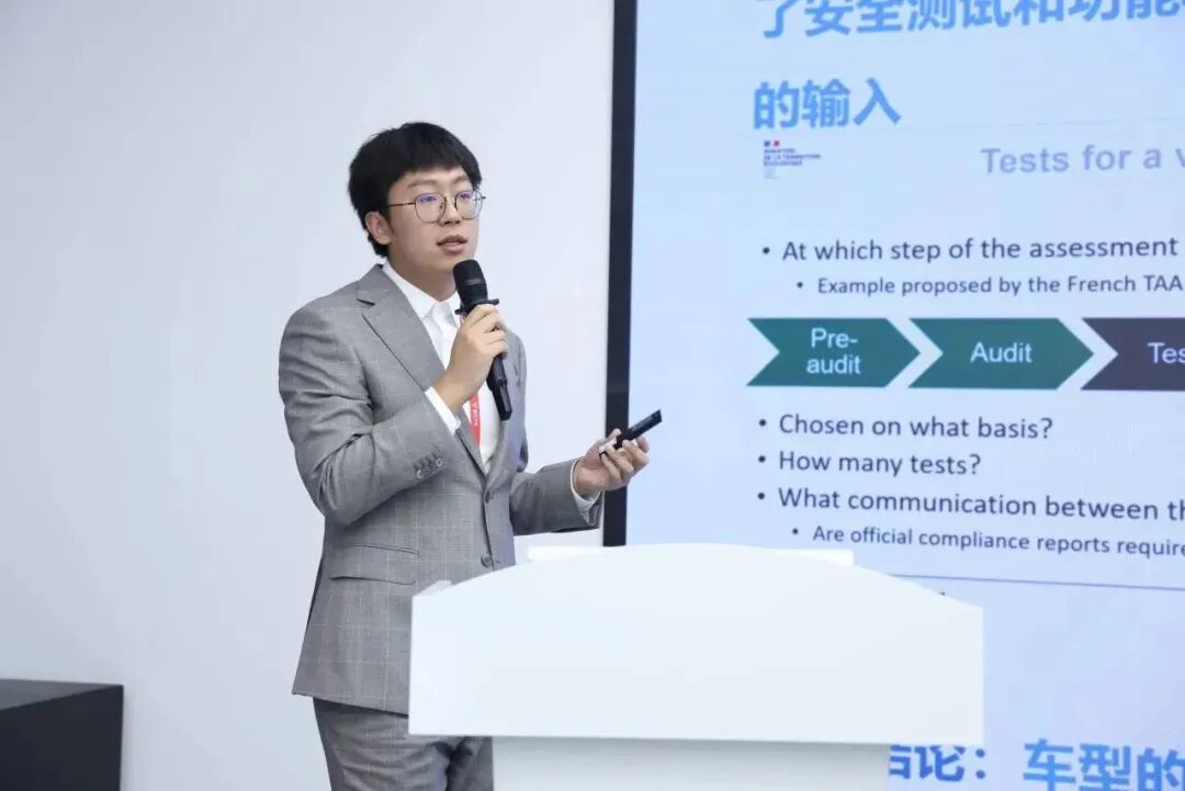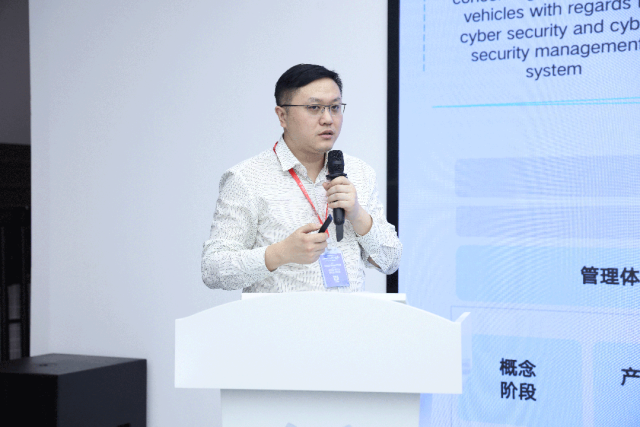 接着,中汽研汽车检验中心(天津) 有限公司网络安全研究员秦一鈜分享了《UN R155 车辆网络安全测试方法》。秦一鈜介绍了在R155法规执行一年期内,中汽研实验室积累的网络安全和网络安全管理体系(R155)试验方法的经验,并对国内R155实施状况进行了总结,同时对实施时车企存在的相关困难点做了解答。
