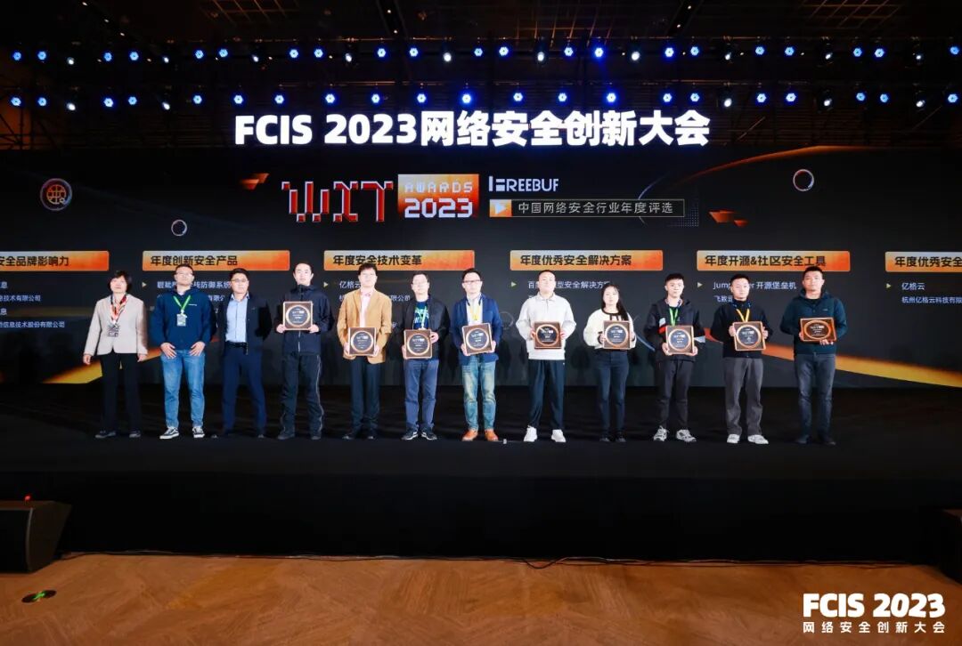 致辞过后,辛晓华与上海斗象信息科技有限公司高级副总裁李学雷、平安银行实验室负责人王延辉、网商银行安全部负责人张欧、上海文鳐信息科技有限公司CTO 胡鸣,共同参与并完成了联创项目的启动仪式。FreeBuf年度评选:WitAwards 2023 获奖名单现场揭晓启动仪式结束后,历时2个多月,累计百余个项目申报及提名,经由大众投票、甲方投票、专家投票及现场投票的公平、完善的评审,WitAwards 2023八项年度大奖获奖名单在现场全部揭晓!本届WitAwards的主办方领导中国(上海)自由贸易试验区管委会张江管理局副局长付军、上海张江高科技园区开发股份有限公司副董事长、总经理何大军分别为获奖代表现场颁发了荣誉奖杯。