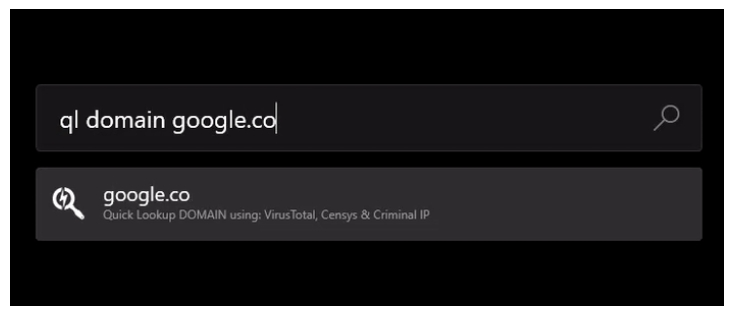 Quick-Lookup-ptrun是一款针对PowerToys Run的网络安全快速查询和分析工具,该工具是一款专为PowerToys Run设计的插件,可以帮助广大研究人员快速搜索IP地址、域名、哈希和其他安全工具提供的任意数据。广大安全分析专家、渗透测试人员以及任何想要快速查询某些安全信息的人都可以使用Quick-Lookup-ptrun来完成自己的任务。