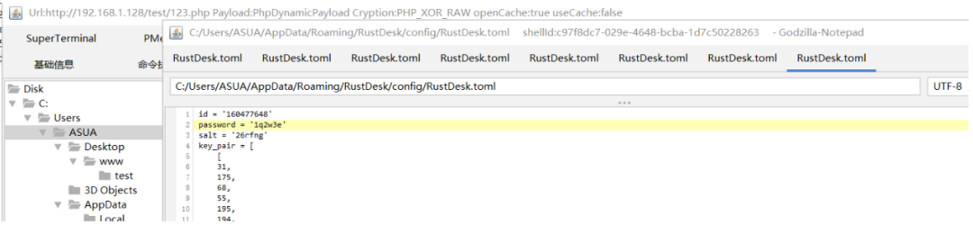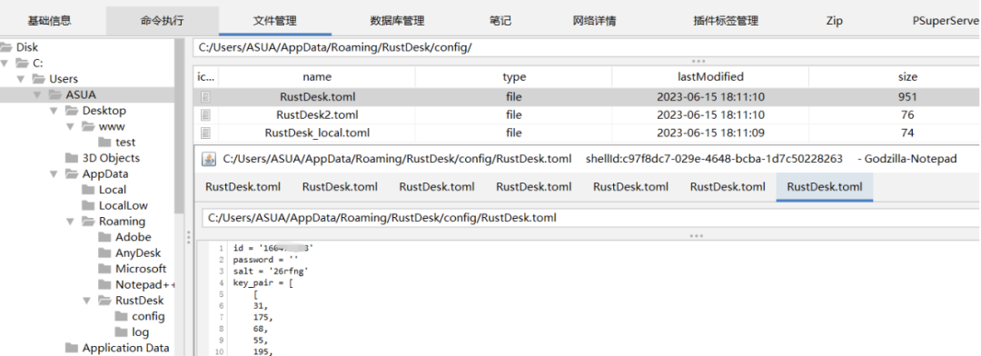 虽然密码是加密的。只需要将被控主机的该文件内容覆盖我们自己本地的配置文件即可配置文件内容案例: