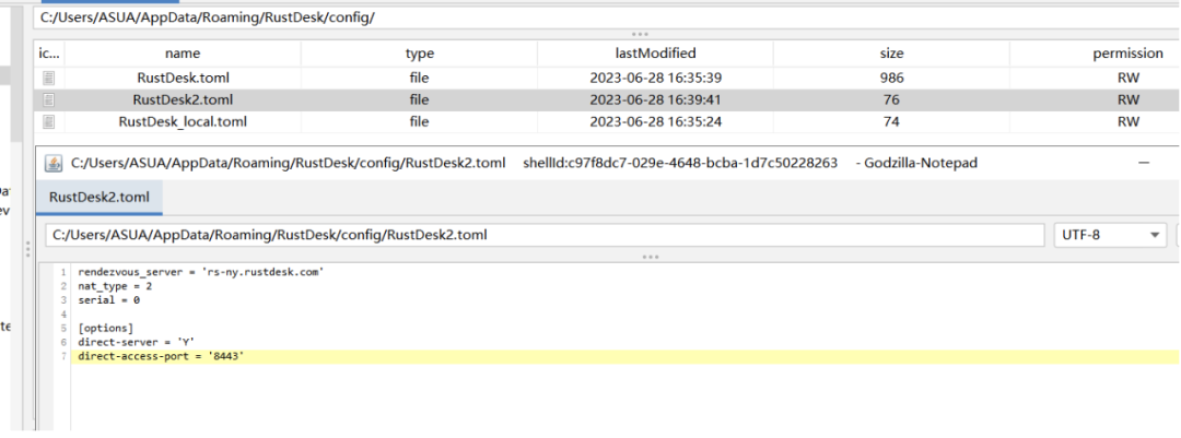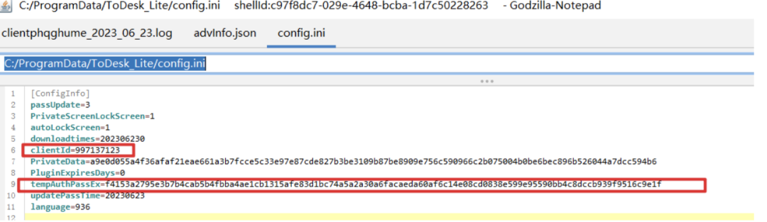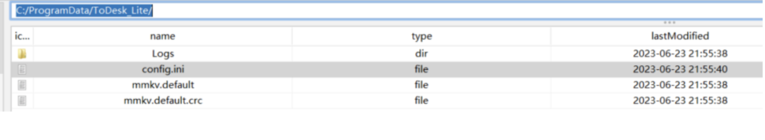 这时候我们需要获取其设备代码和临时密码,其存储在C:/ProgramData/ToDesk_Lite/config.ini