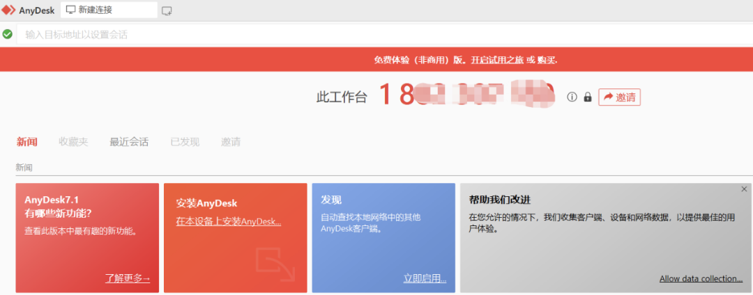在本地打开anydesk,首页就是连接的id号(记住这串id)