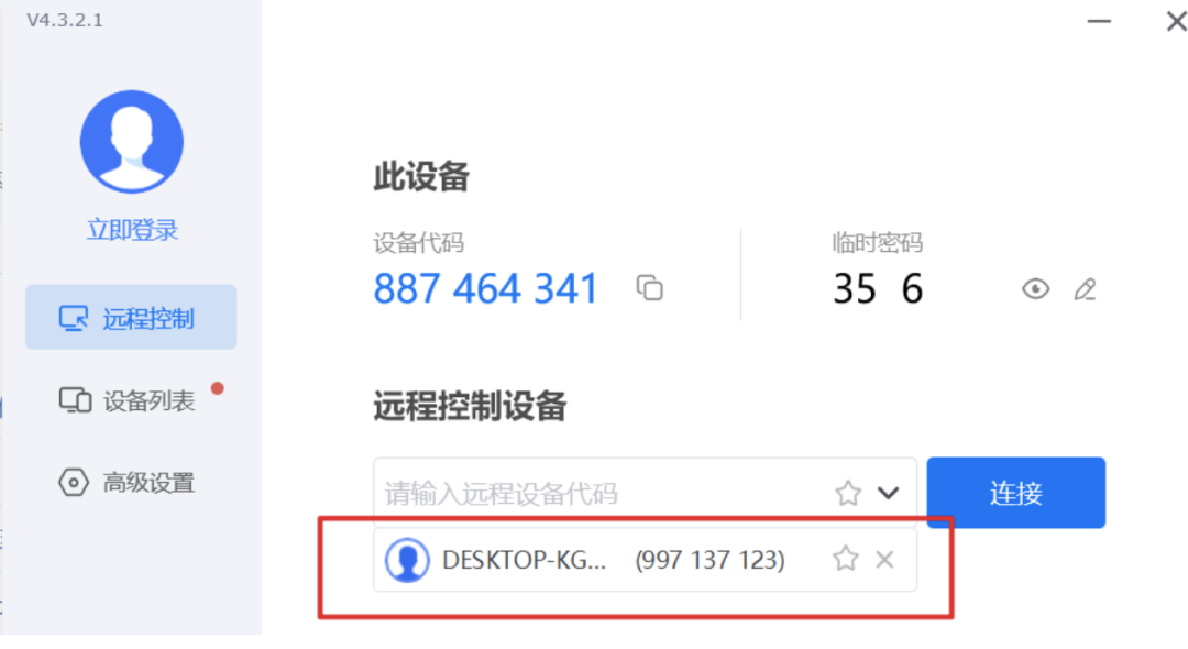 连接方式:被控端和控制端为同一个