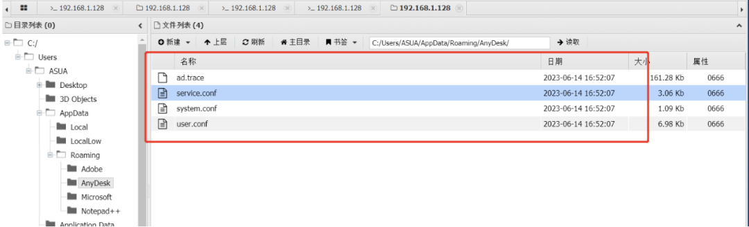 将这四个配置文件和AnyDesk.exe打包上传到目标主机的 C:\Users\用户名\AppData\Roaming\AnyDesk 目录下就可以远程控制了。