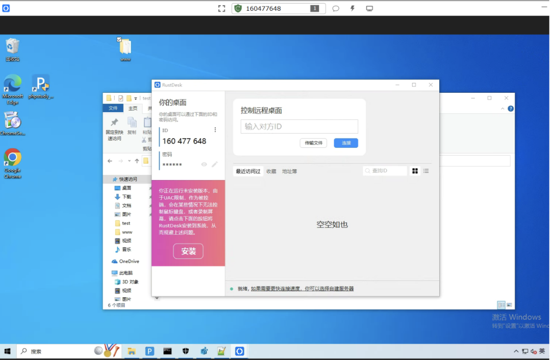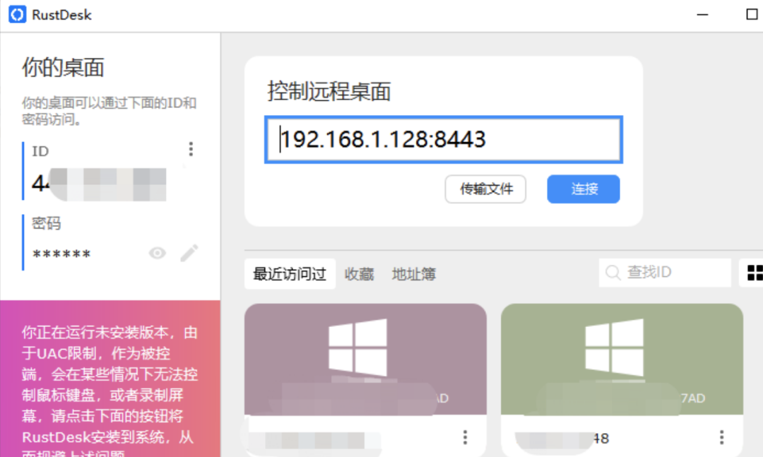 重新启动RustDesk.exe,连接成功。