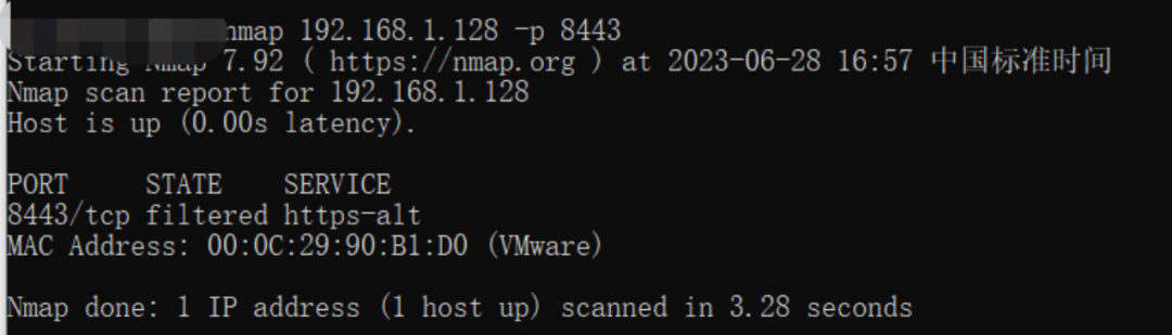但测试过程发现连不上,使用nmap检查端口结果是filtered,应该是被防火墙拦了