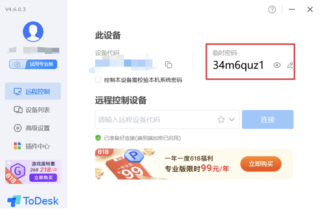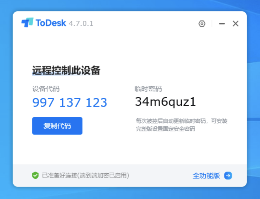 对于全功能版,可以通过命令行形式设置安全密码 Todesk.exe-setpasswd123456