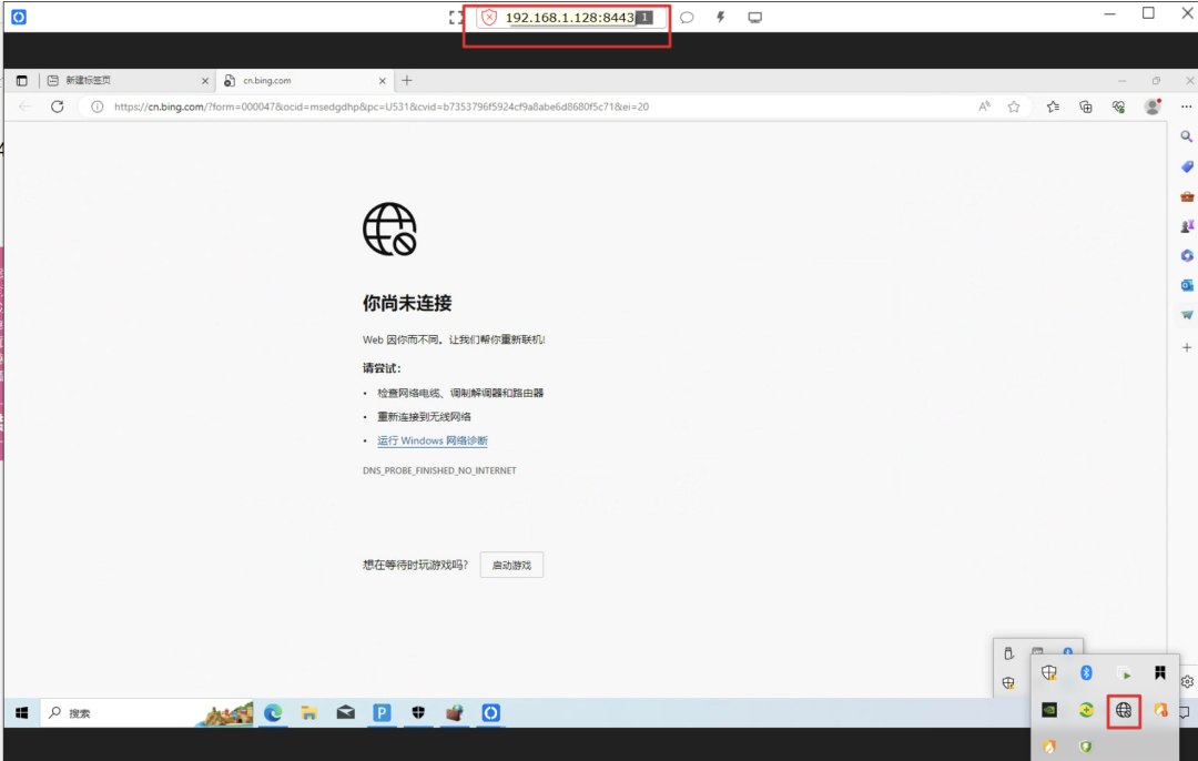 通过IP连接成功,当前为纯内网环境,无互联网连接