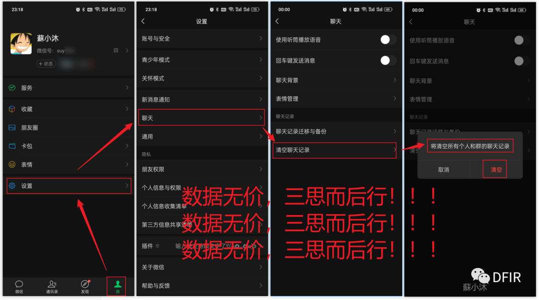 当前社交应用软件中最吃内存存储的,微信如果排第二,估计没人敢排第一,在此简单聊聊微信聊天记录的删除与数据恢复---【蘇小沐】