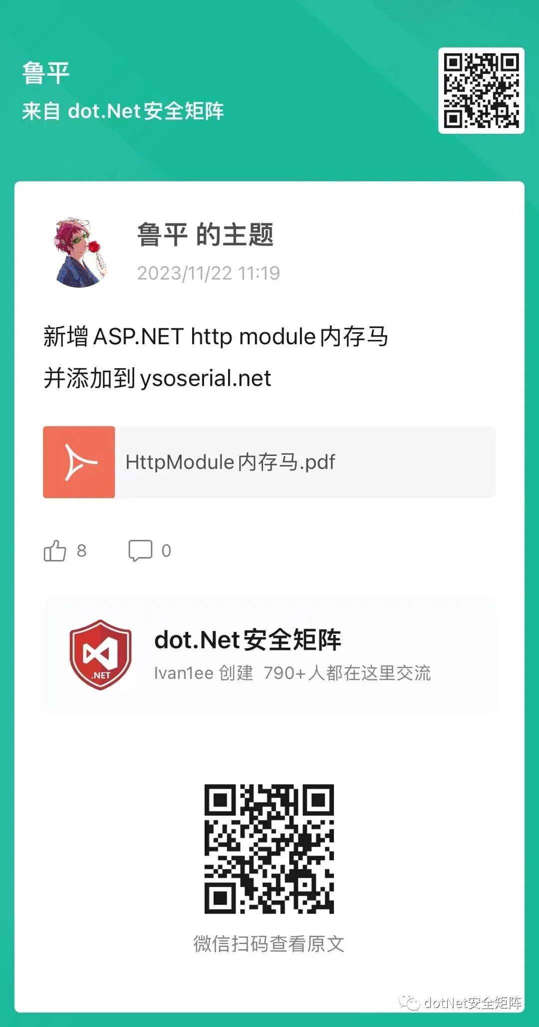 为了更好地应对基于.NET技术栈的风险识别和未知威胁,dotNet安全矩阵星球从创建以来一直聚焦于.NET领域的安全攻防技术,定位于高质量安全攻防星球社区,也得到了许多师傅们的支持和信任,通过星球深度连接入圈的师傅们,一起推动.NET安全高质量的向前发展。经过运营团队成员商议一致同意给到师傅们最大优惠力度,只需129元就可以加入我们。