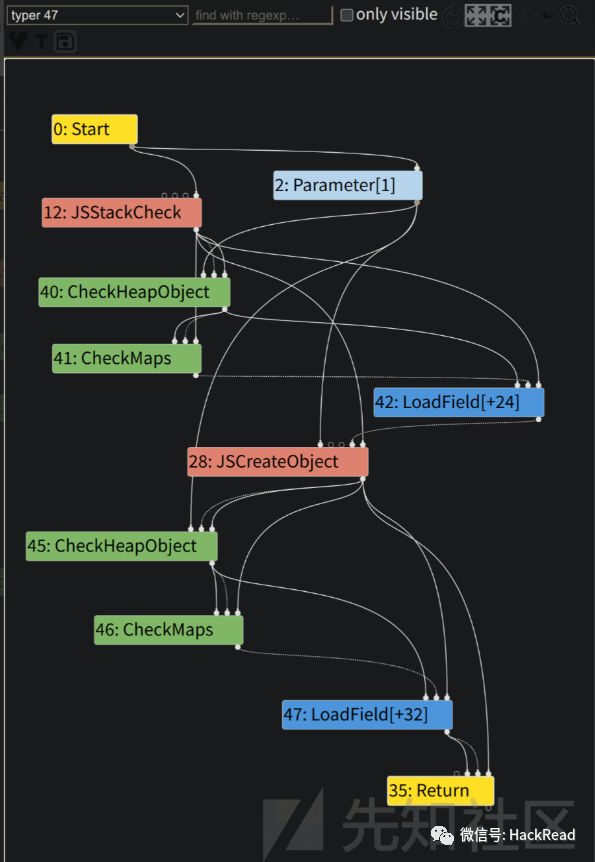Turbofan是V8引擎的最终优化编译器,负责将IR转换为高度优化的机器代码。在这个阶段,V8会根据程序的执行情况应用更复杂的优化策略,包括内联缓存、类型推断、循环优化等。Turbofan生成的机器代码是高度优化的,以提供最佳的性能。但是,由于优化的程度很高,在这一阶段很容易产生错误。CVE-2018-17463就是由于在优化过程中操作的side effect判断不正确,造成了类型混淆错误。