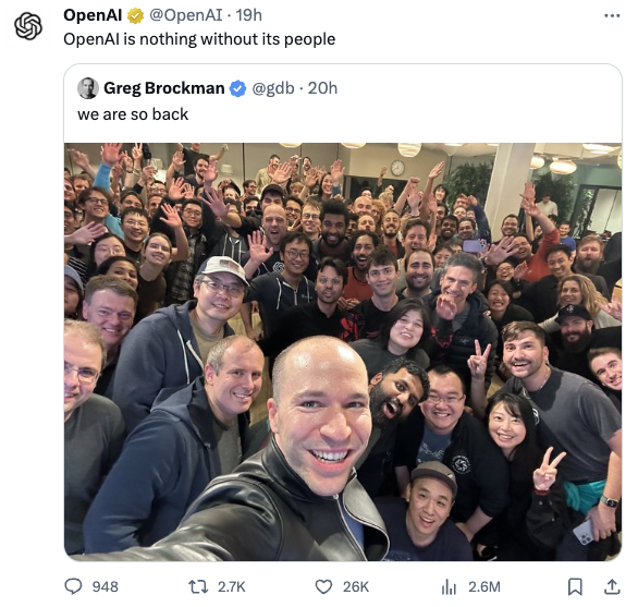 昨天 Sam Altman 正式回归 OpenAI ,但关于这次罢免事件的更多内幕细节才开始浮出水面。路透社报道称,在 Altman 被罢免的前几天, OpenAI 几位研究人员致信董事会,警告说他们