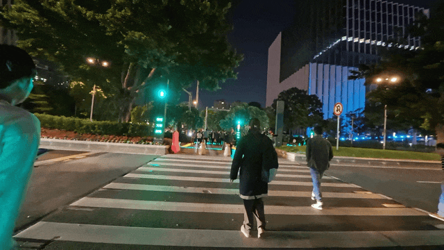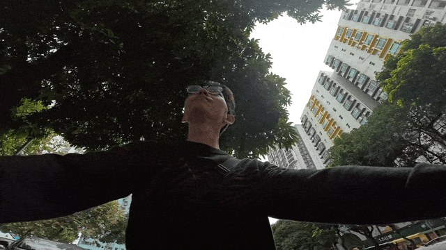 如果换到光线充足的日间环境,Insta360 Ace Pro 的防抖表现基本就没什么可以挑剔的,手臂上下抖动被消除之后,日常走路、骑车都是顺滑平移的状态,要是能控制移动的步速,要做出一个类似滑轨的平滑移动也不难。上下楼梯的步伐感也消除了不少,不会有太突兀的上下抖动。![]()