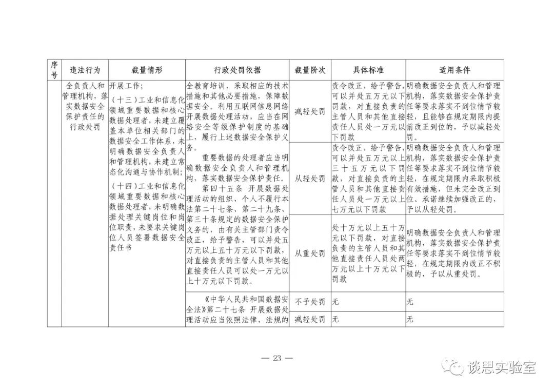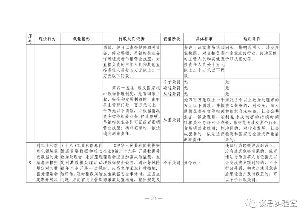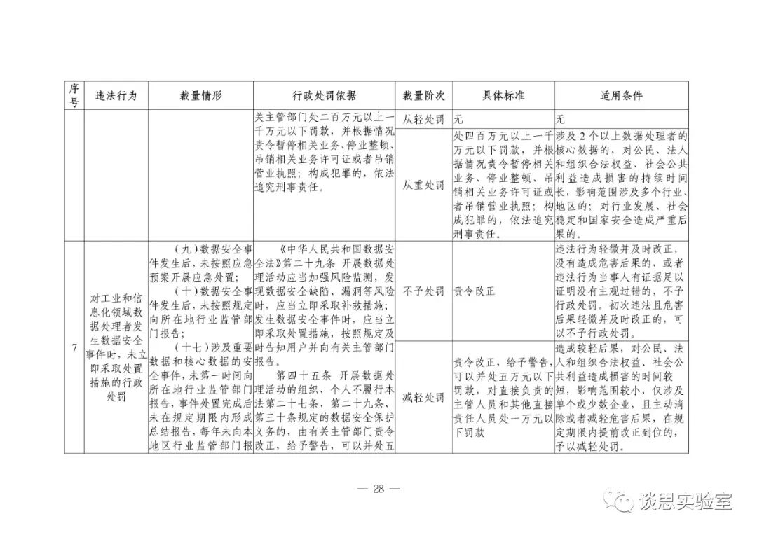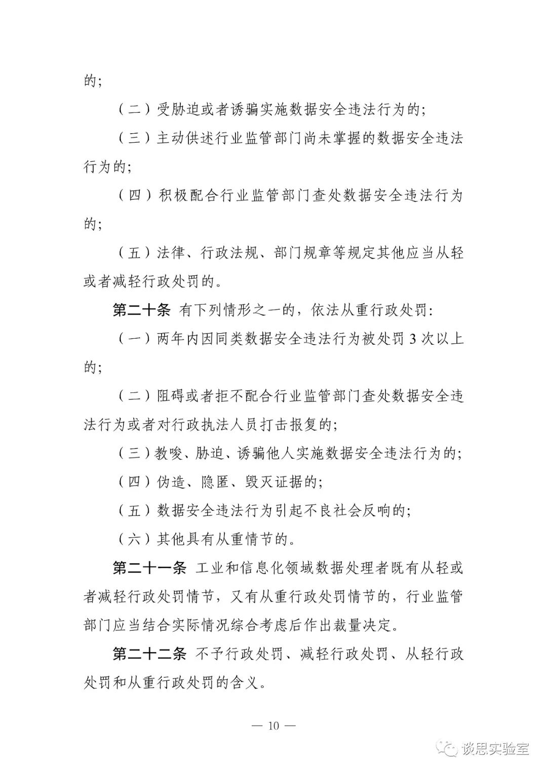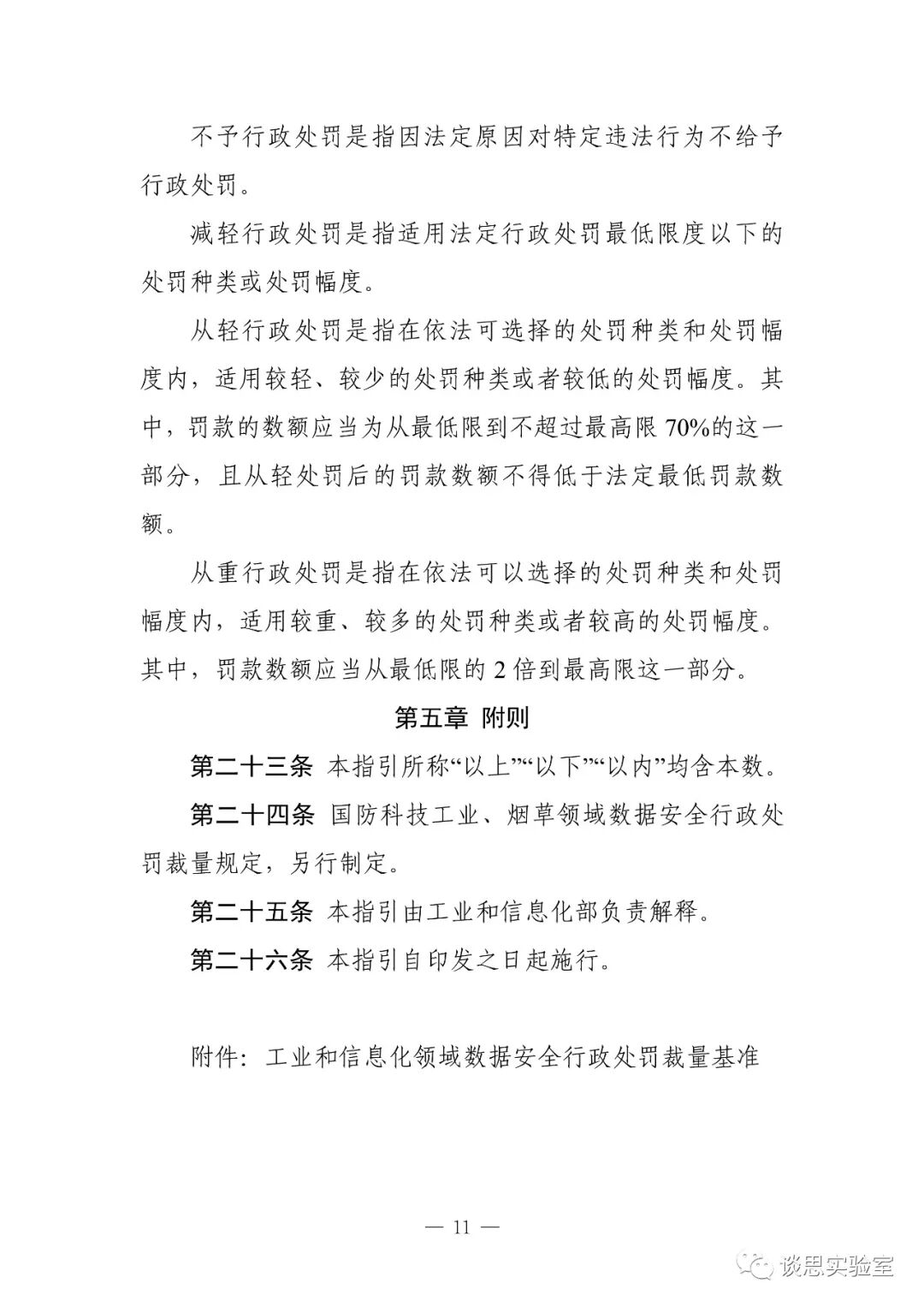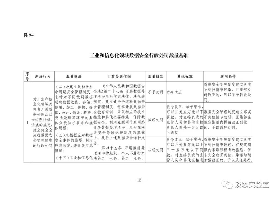 关注公众号 谈思实验室,回复“1123”,即可获得《工业和信息化领域数据安全行政处罚裁量指引(试行)》政策原文。