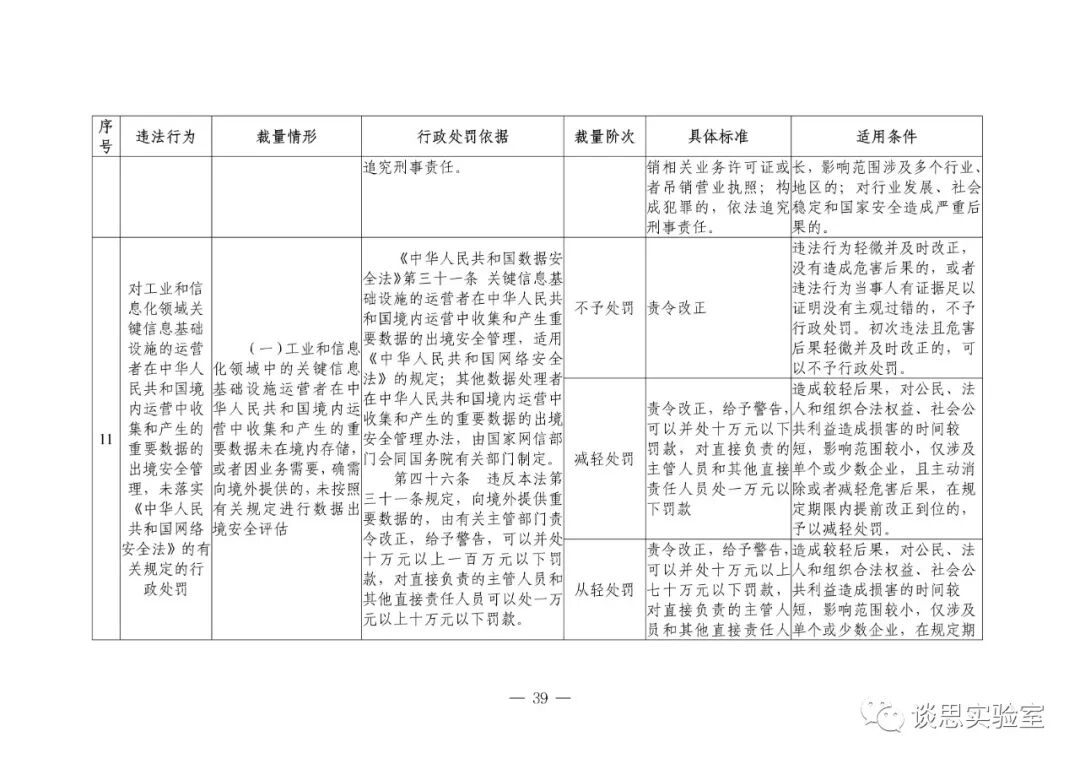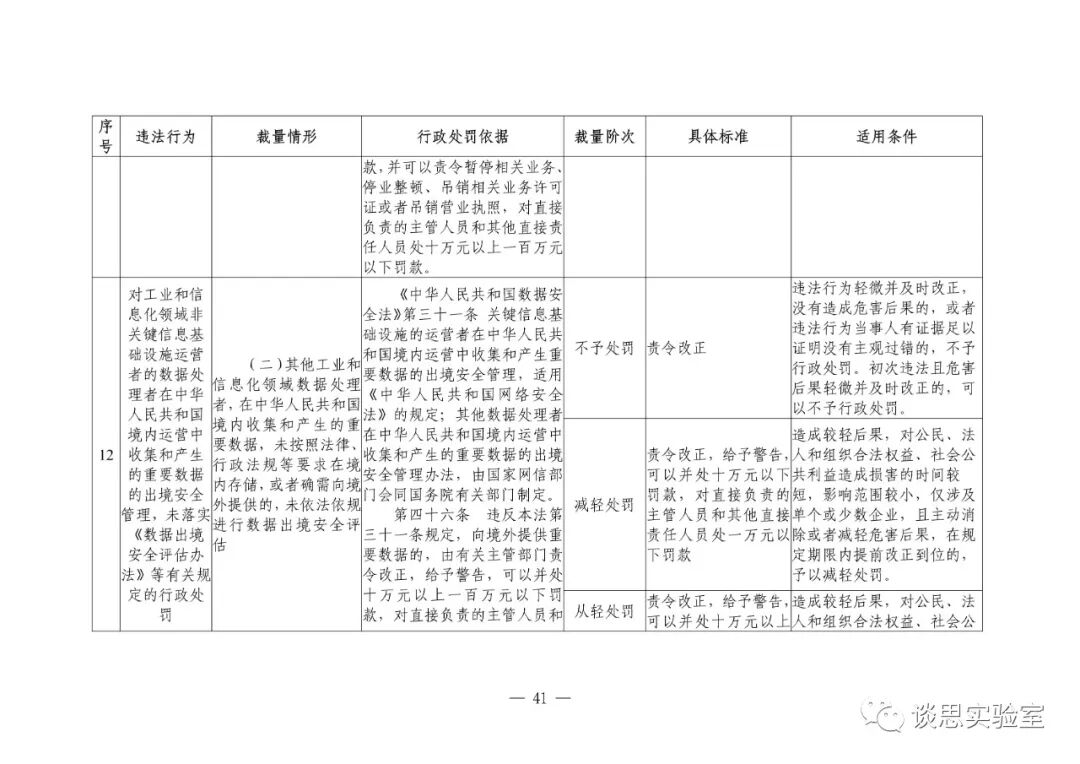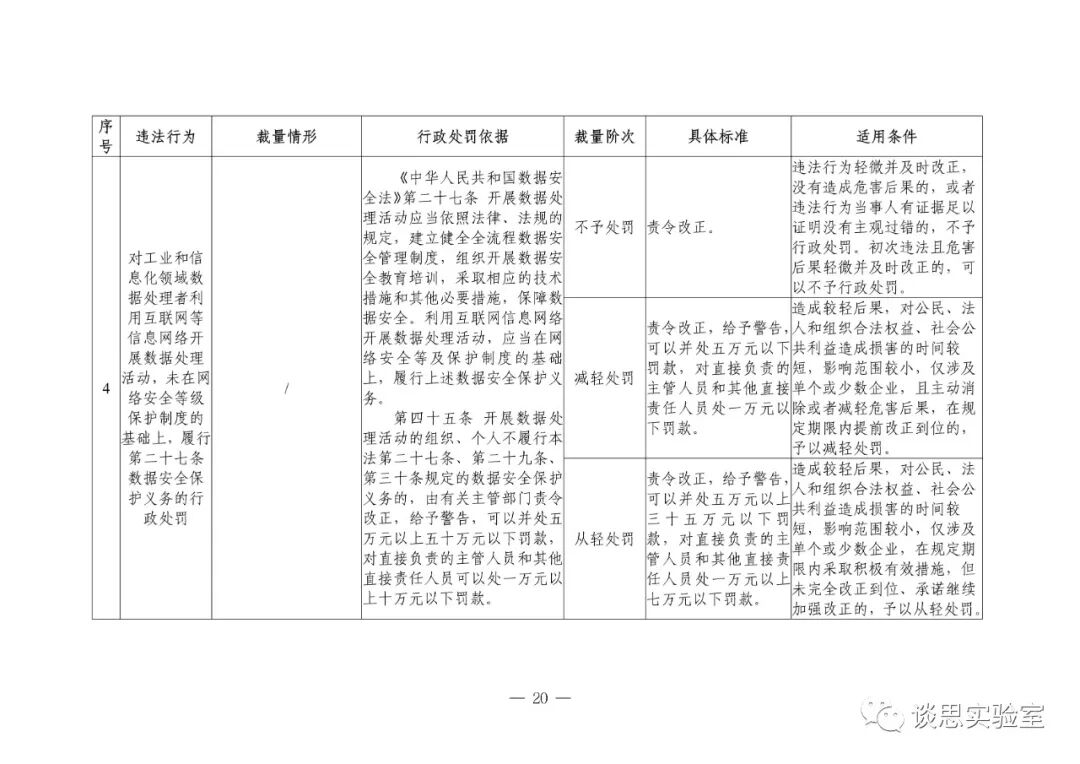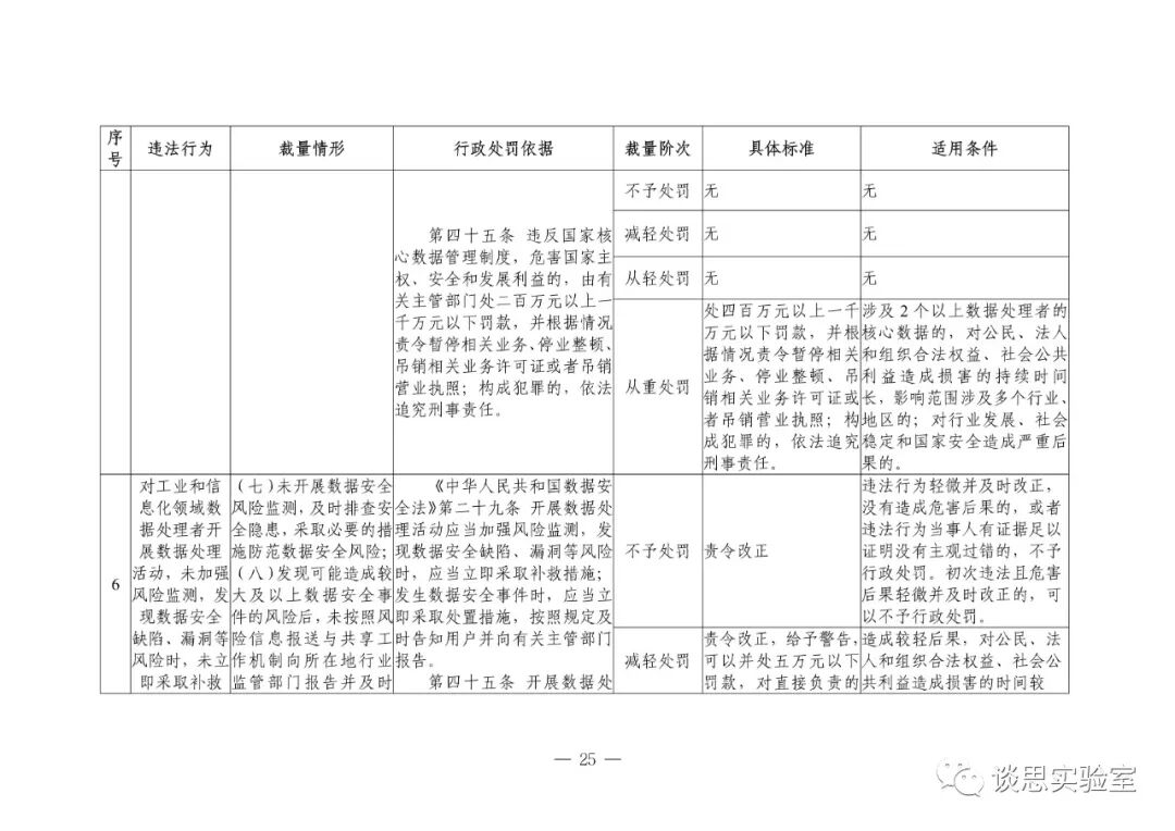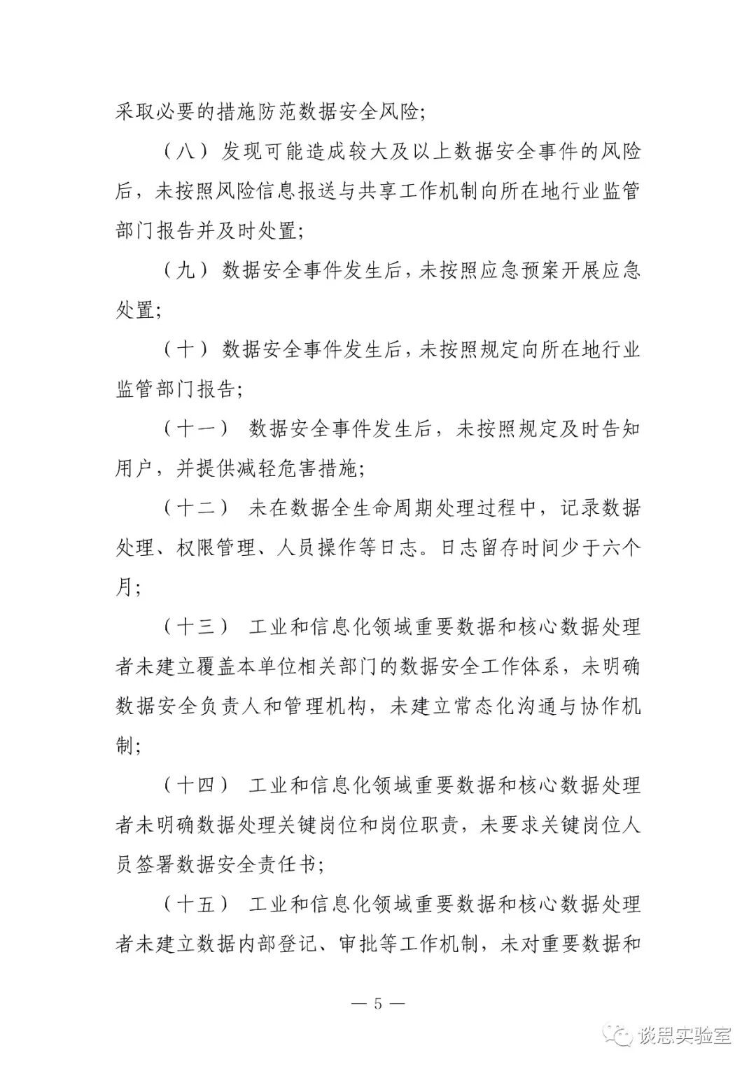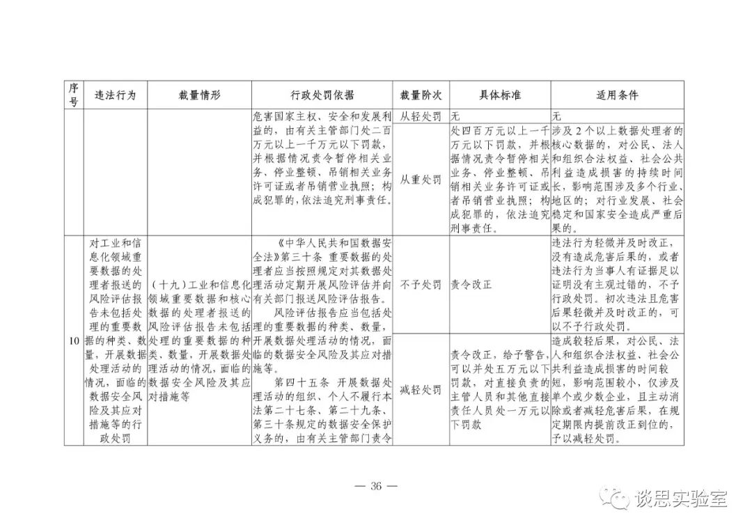 关注公众号 谈思实验室,回复“1123”,即可获得《工业和信息化领域数据安全行政处罚裁量指引(试行)》政策原文。
