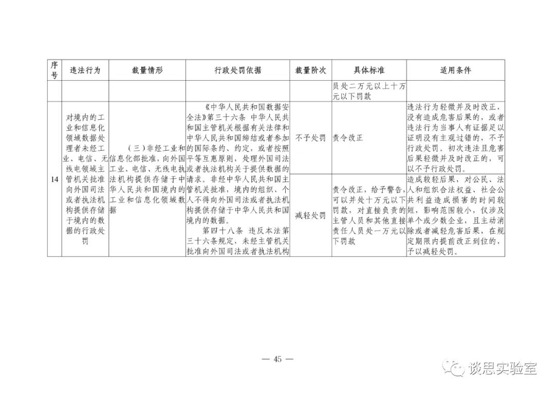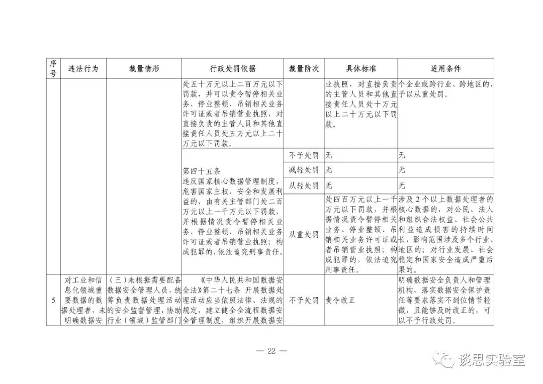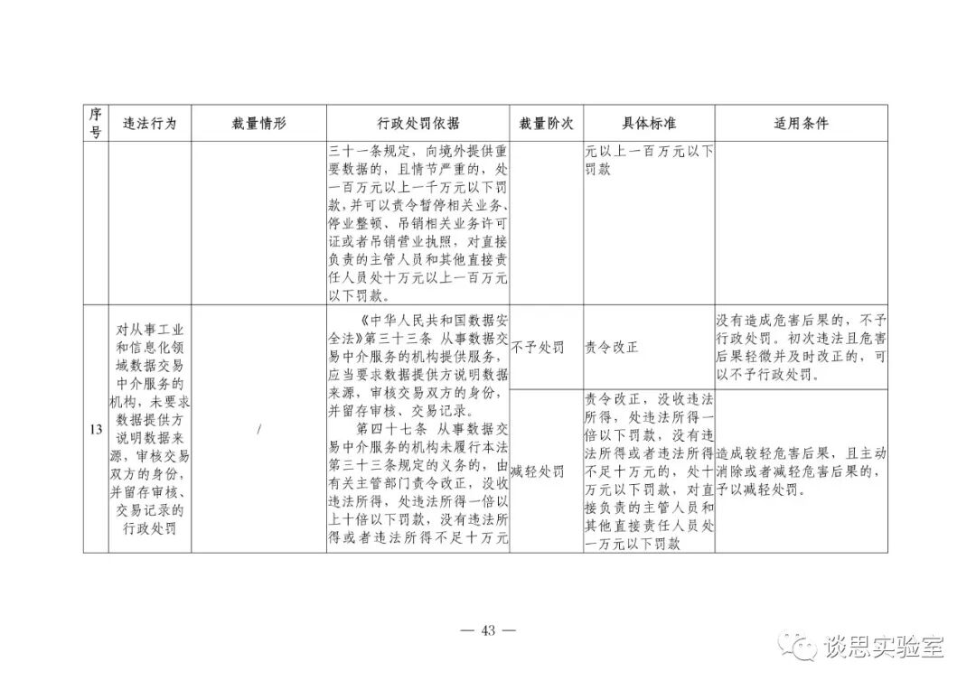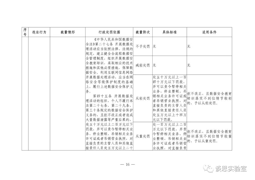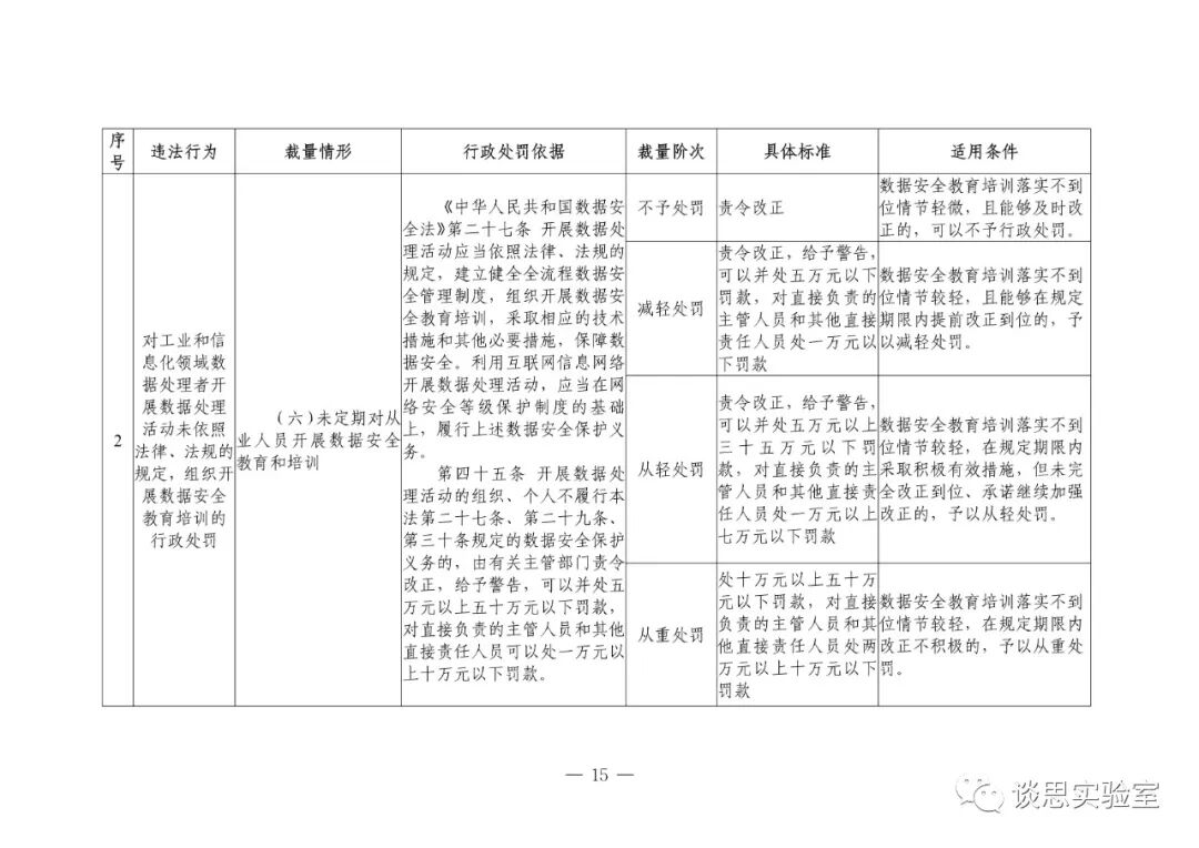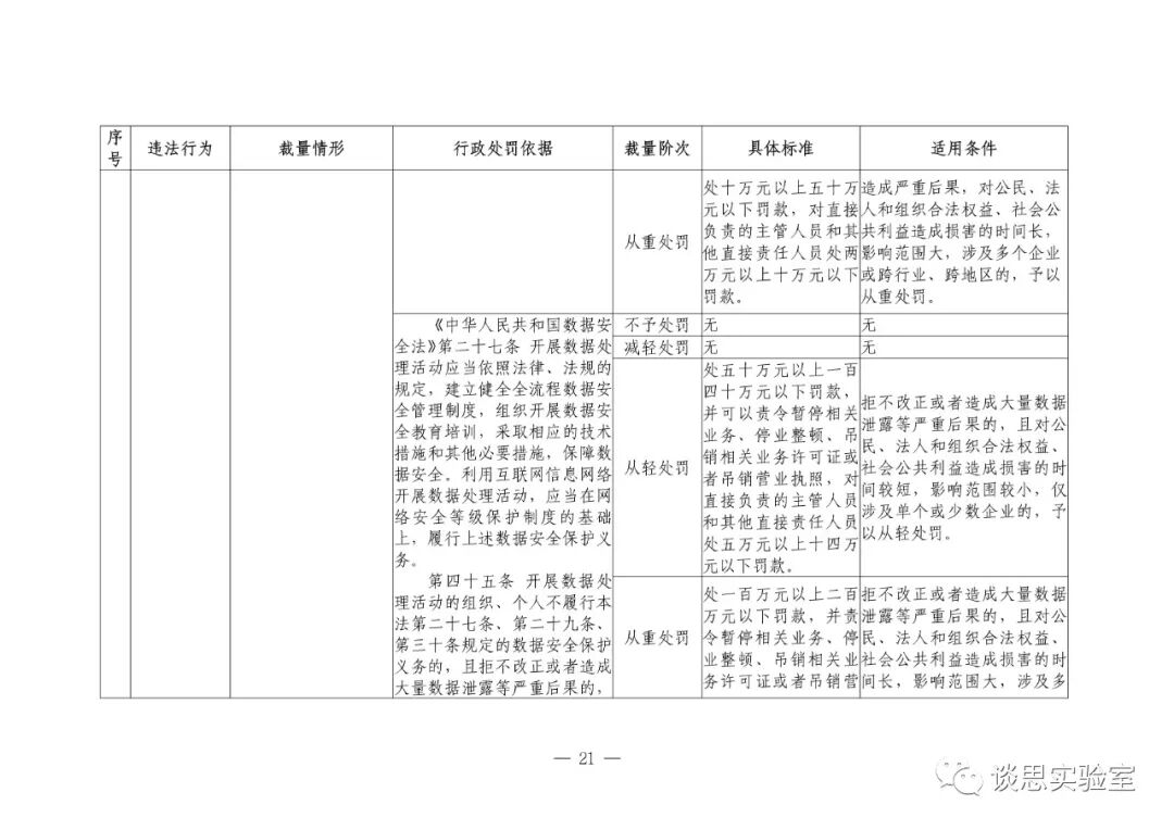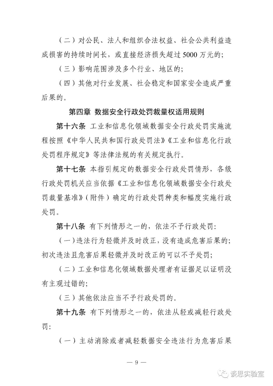关注公众号 谈思实验室,回复“1123”,即可获得《工业和信息化领域数据安全行政处罚裁量指引(试行)》政策原文。