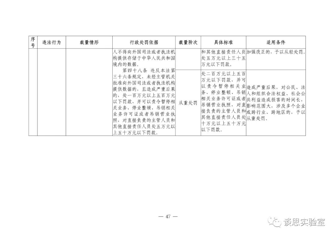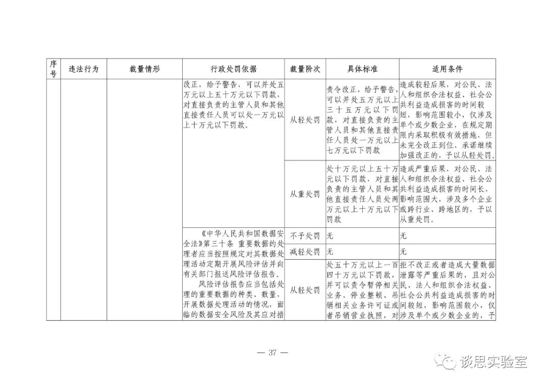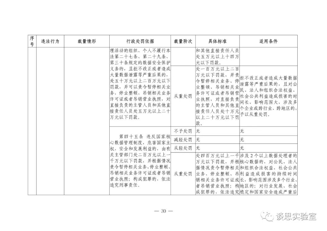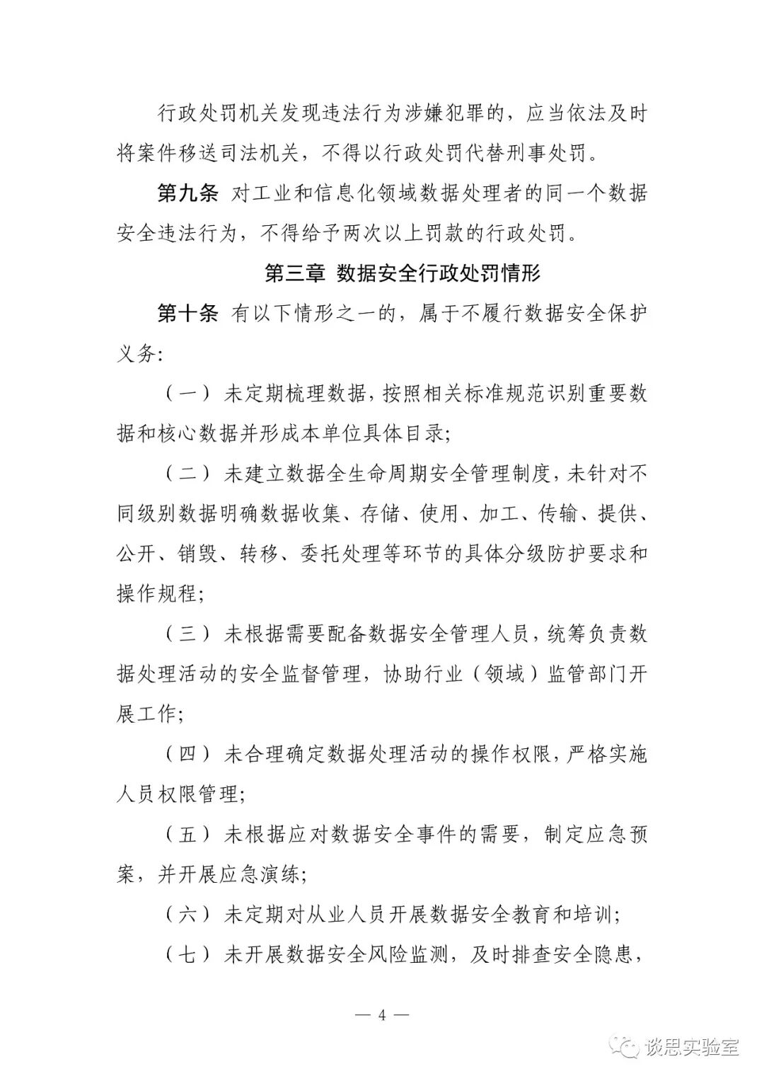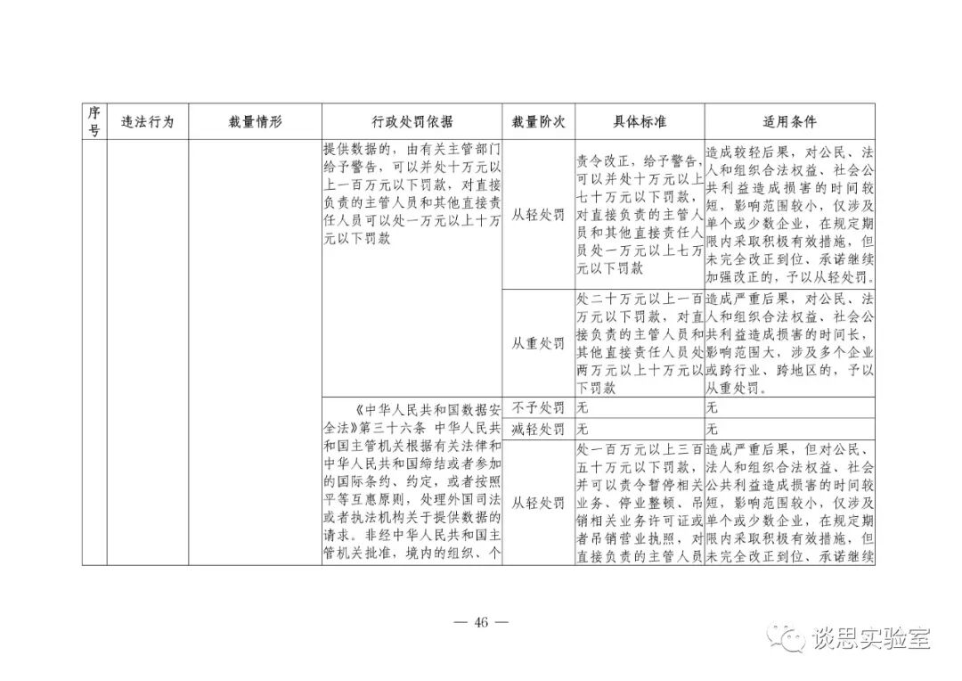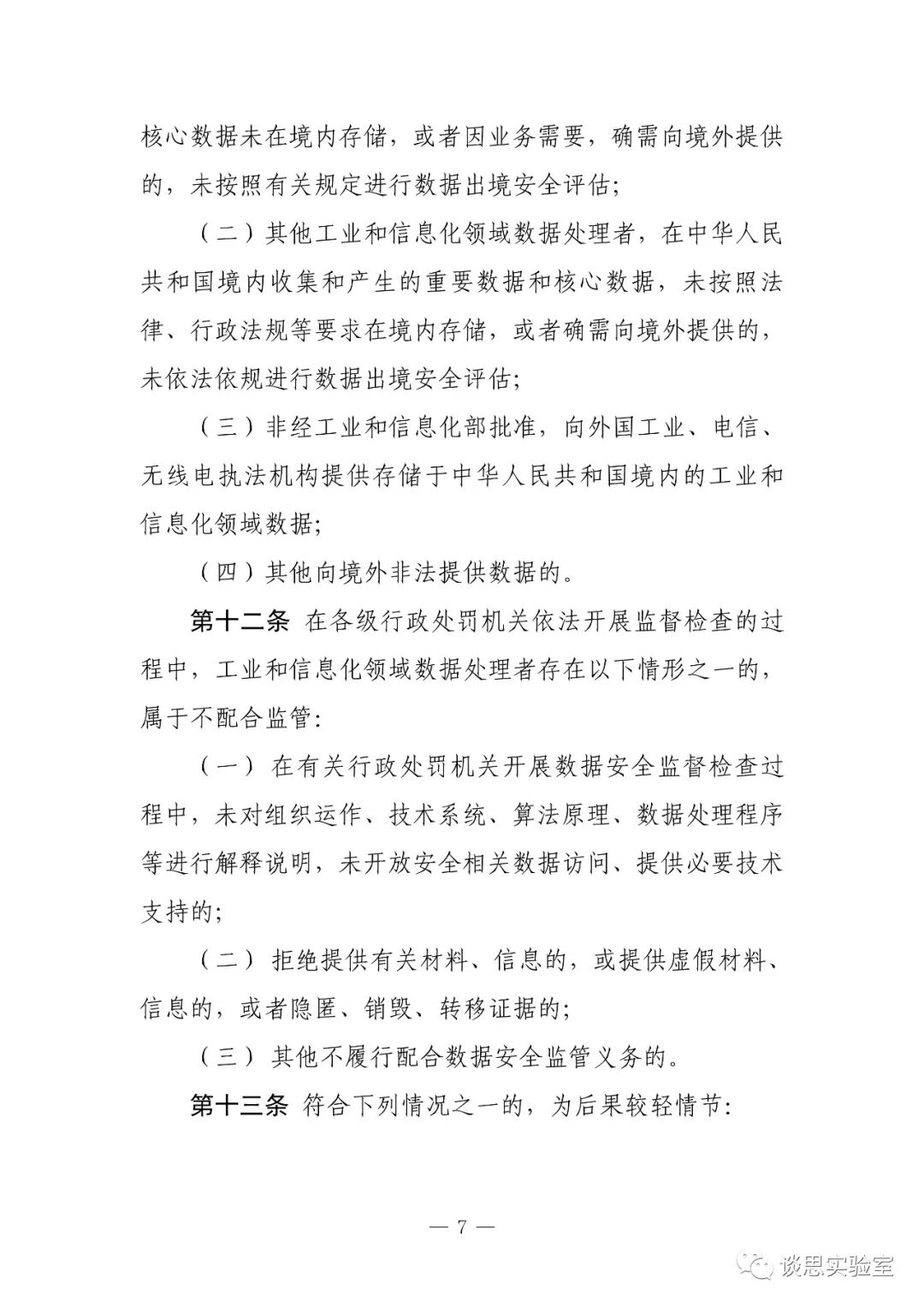 关注公众号 谈思实验室,回复“1123”,即可获得《工业和信息化领域数据安全行政处罚裁量指引(试行)》政策原文。