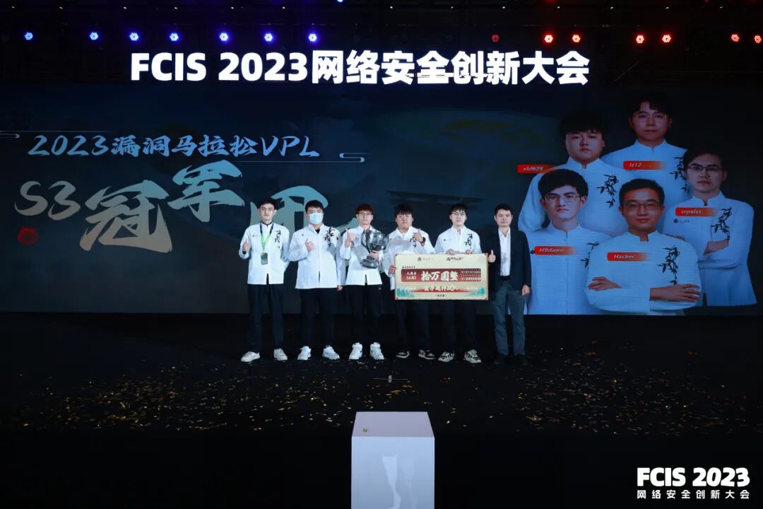 软件供应链上每一个环节的安全问题,都有可能成为黑客攻击的切入口。千里之堤毁于蚁穴,把住软件供应链每个关卡,莫让小小漏洞成为“洪水猛兽”。而通过攻击面管理,企业可以全面了解其系统和网络面临的威胁,洞察攻击者可能的入口和漏洞,从而有针对性地加强这些薄弱环节的保护。此外还可以提供实时的风险评估和预警,使企业能够及时采取应对措施,减少潜在的损失和影响。漏洞马拉松也在今日迎来了总决赛。现场战况十分焦灼,两队比分起起伏伏,现场观众时不时发出呼声。经过激烈比拼,最终由Hacker_带领的盒子超神战队一路过关斩将,拔得了本次比赛的头筹,获得了最终的VPL S3冠军杯。斗象科技副总裁曾裕智为冠军战队现场颁发奖杯,小莎莎为战队MVP颁发奖品。