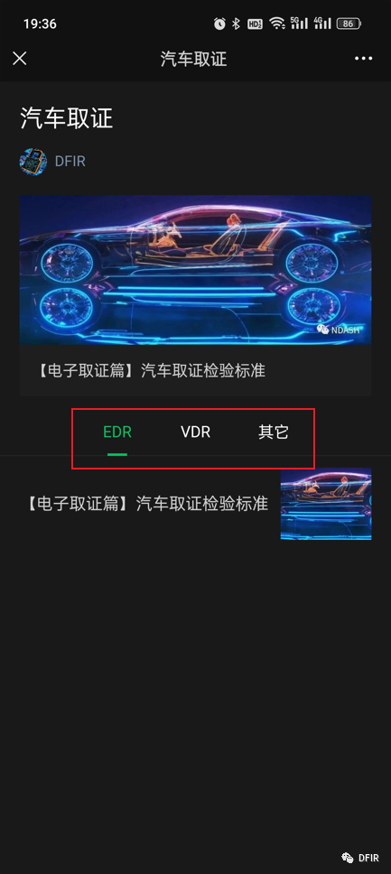 【电子取证】菜单目前分为五个子菜单(公众号最多只能设置5个子菜单)。目前暂且分为【计算机取证、手机取证、网络取证、汽车取证、物联网取证】5个子菜单,根据分类,可以到对应的子菜单查找需要的信息。