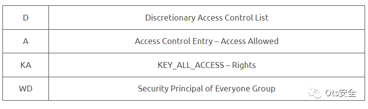 下表显示了上述命令中 SDDL 首字母缩略词的含义。
