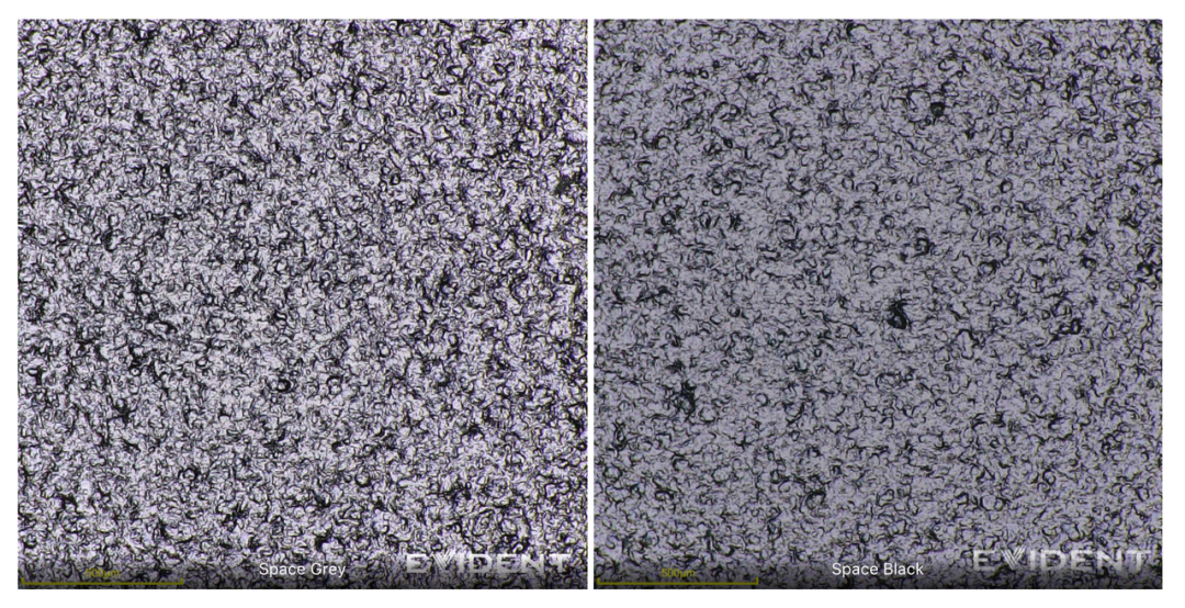 众所周知,人眼之所以能看见色彩斑斓的世界,是因为不同波长的光反射到了我们眼里,波长较长的光成为了明艳的红色,波长较短的光则是深郁的蓝色,而当大部分可见波长的光线不可见时,就有了黑色。2019 年 5 月,苹果公司提交了一项名为「使阳极氧化部件具备哑光黑色外观」的专利。阳极氧化是近几年在电子设备外观上最常见的工艺之一,通过对铝合金进行化学处理,使其表面覆盖一层氧化物,增强铝合金的耐磨性和抗腐蚀性,还能有效防指纹等油污沾染。在专利中,苹果表示,尽管在阳极氧化工艺过程中,可以通过添加着色材料颗粒的方式为电子设备上色,使其拥有五彩缤纷的铝合金外壳,但要实现纯正的黑色并不容易。打磨得过于光滑的外壳会造成炫光,导致视觉上呈现深灰色。为此,苹果改进了阳极氧化的蚀刻技术,在微观层面上让铝合金表面的氧化颗粒更加粗糙,进而增强铝合金部件的漫反射——光线被反射到了四面八方,进入眼睛的光线更少了,也就显得这个部件更黑了。MacBook Pro 表面经放大后的影像,左侧为深空灰,右侧为深空黑,图片来源:ifixit这就是新款 MacBook Pro「深空黑」的来由,是搭载 M3 Pro/Max 芯片机型的独占配色,M3 款则是银色和深空灰两种配色,还少了一个雷雳 4 接口。实测下来,这可能是黑色笔记本电脑里最抗指纹的那一款——但仍然会沾上指纹,相较银色款而言,深空黑 MacBook Pro 好看是真好看,耐脏也是真的不耐脏。左边为深空黑,右边为深空灰,图片来源:ifixit一直以来,MacBook Pro 都是苹果最重要的技术试验田。2006 年,乔布斯在 Macworld 大会上宣布将放弃 PowerPC 处理器转投 Intel 阵营,并推出苹果第一代 MacBook Pro 笔记本电脑——搭载 Intel Core 处理器。两年后,采用了阳极氧化工艺、Unibody 一体化设计的第二代 MacBook Pro 横空出世,后来这项技术被广泛运用在 MacBook Air、iPhone 等苹果产品上。2008 年款 MacBook Pro,图片来源:Apple而自 2020 年至今,历经三年迭代,苹果旗下的 Mac 产品线已经用 M 系列芯片完全取代了 Intel 平台,跟着一起被淘汰的还有 Touch Bar。现在 Mac 上最显性的英特尔技术,是那个和苹果共同研发的雷雳端口——这意味着 ARM 架构硬件平台借着移动互联网的东风终于杀回桌面端,苹果显然是其背后最大的推手。早前,爱范儿对几款搭载 M3 和 M3 Max 芯片的 Mac 新品进行了性能测试。这是业界首批采用 3nm 制程工艺的 PC 芯片,M3 和前两代芯片的核心数保持一致,最高支持 24GB 的统一内存、2TB 存储容量。CPU 仍是 4 大核 + 4 小核的设计,单核最高频率突破了 4GHz,并采用了全新架构的 10 核 GPU,新增了动态缓存功能,支持硬件加速网格着色、光线追踪技术等特性——简而言之,M3 和 M3 Pro 都属于常规更新,处理器性能小幅升级,图形性能有了长足提升,补齐了 M 系芯片的一块短板。GPU 性能带来显形体验在于,用 Mac 打游戏终于不是一句空话。以年度游戏提名代表《博德之门 3》为例,M3 芯片+16GB 内存的配置可以稳定 2K 分辨率(3024×1964 像素)流畅地跑中画质 30 帧,而 M3 Pro 版可以跑最高画质 30 帧,如果耐心调节一下配置,打开 FSR 甚至可以跑到 60 帧——换言之,只有厂商愿意移植,M3 版 Mac 打游戏是一点问题没有——问题是还没有厂商愿意走出这一步。打开我的 Steam 游戏库,超过 200 个游戏里只有 50 个左右适配了 macOS,其中 2023 年推出的游戏只有:《博德之门 3》《潜水员戴夫》和《完蛋!我被美女包围了!》。像《生化危机 8》《死亡搁浅》这样的热门 3A 大作,虽然有 macOS 版本但仅限 App Store 发行,如果要玩这些游戏,你还得在 App Store 上再买一份,游戏进度也得从头再来——玩家要付出的成本实在太高了。显然,现阶段要在 Mac 上玩游戏只满足了充分条件,但真的没什么必要。M3 Max 则是另一副光景,最高配备了 16 核心的CPU,比 M2 Max 多了四个大核,单核性能和多核性能都远超 M2 Max,在 GeekBench 跑分测试中,M3 Max 的单核性能比 M2 Max 强 20% 左右,但多核性能要强上 50%,能跟 M2 Ultra 打得有来有回,并且支持最高 128GB 统一内存、8TB 存储空间,是真正的移动工作站。经实测,在视频剪辑等场景下,M3 Max 没有跟前两代 Max 芯片拉开太大差距,但一旦涉及到图形渲染的作业,M3 Max 就能充分发挥图形性能,相较前两代有着跨越式的提升。我们用达芬奇渲染了一段 30 分钟的 4K 50FPS H.265 编码 MP4 格式的视频——这已经是媒体工作中处理压力比较大的场景。搭载 M3 的 MacBook Pro 花了 18 分钟 22 秒,这已经跟同配置的 M2 Pro 机型不相伯仲,比低配版 M2 机型要快了近 4 分钟,M1 机型则是持续报错无法渲染,直接退出战斗。但这项任务对高端局的选手压力不大,M3 Max 的 MacBook Pro 则只需要 8 分半钟就处理完了,不过 M1 Max 和 M2 Max 机型也能跑到差不多的成绩。有意思的是,我们使用 Pr 跑了一个更为复杂的后期渲染工程项目文件进行压力测试,这个文件中有较多特效设计,更考验设备的图形性能。经实测,我们发现 48GB 统一内存的 M3 Max 机型渲染时间在 15 分钟左右,而 96GB 统一内存的 M2 Max 设备渲染时间不到 10 分钟,由于手头设备有限,我们无法控制变量进行精准测试,但可以看到尽管芯片性能大幅提升,但软件适配、内存大小等因素也会成为瓶颈。这次 M3 版 MacBook Pro 起步存储容量提升到了 512GB,并解决了之前 M2 版本存在的降速问题——然而统一内存起步容量还是 8GB,虽然 macOS 与其他 PC 操作系统相比,