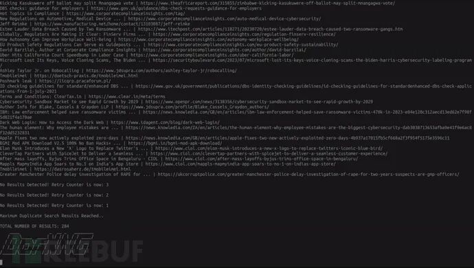 本工具所使用的SearXNG可以将所有的搜索查询请求通过Tor网络进行路由,并使用Tor的MaxCircuitDirtiness配置指令实现每10秒刷新一次网络。除此之外,DorXNG害禁用了SearXNG的所有客户端超时功能,这些配置可以允许我们在发送大量重复搜索查询请求时,避免遇到常见的搜索引擎限制。