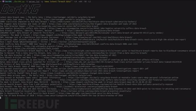./DorXNG.py -S server.lst -q 'search query' -c4 -n64 -t0(向右滑动,查看更多)