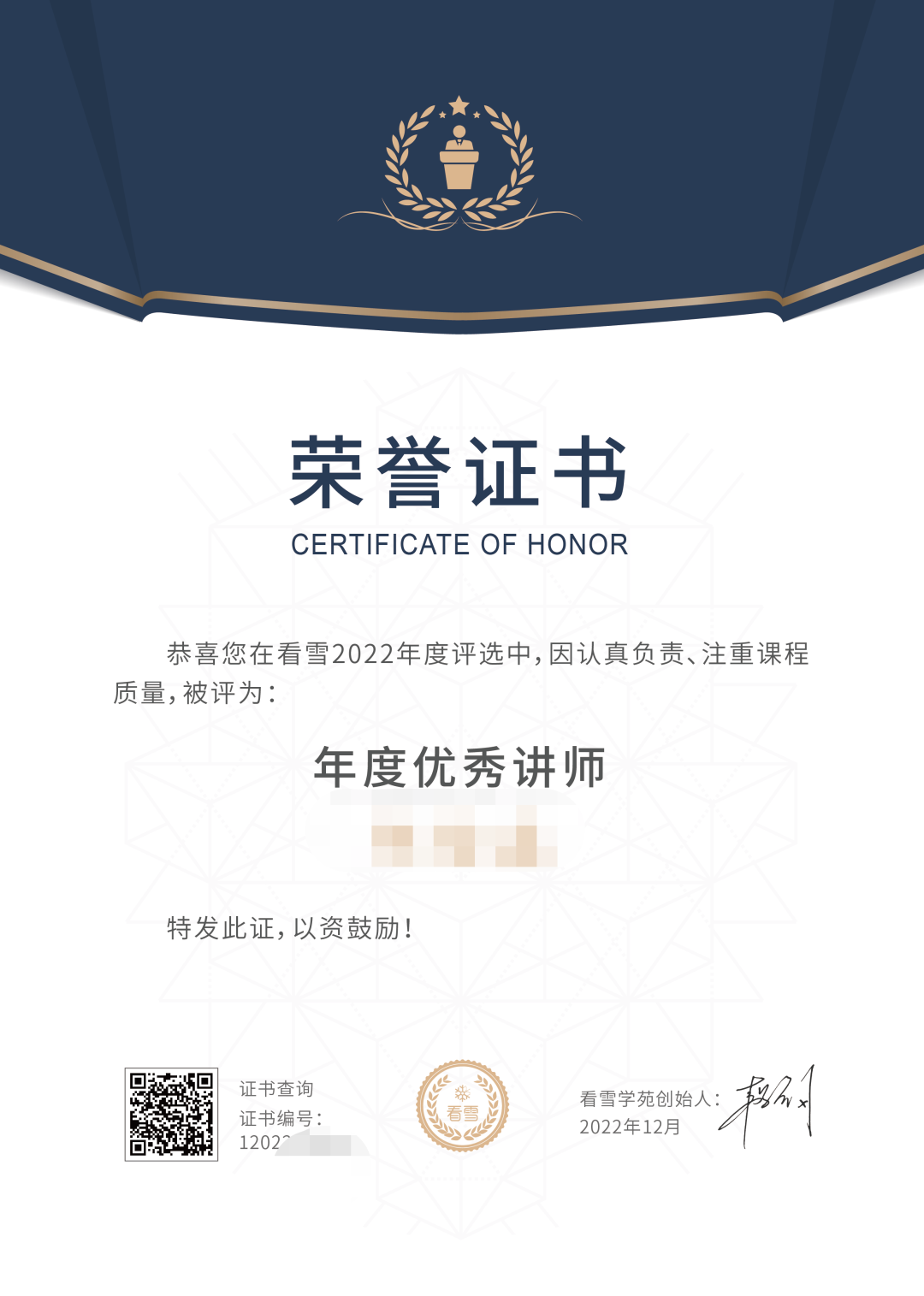 -官方荣誉:讲师聘书、年度优秀讲师证书等