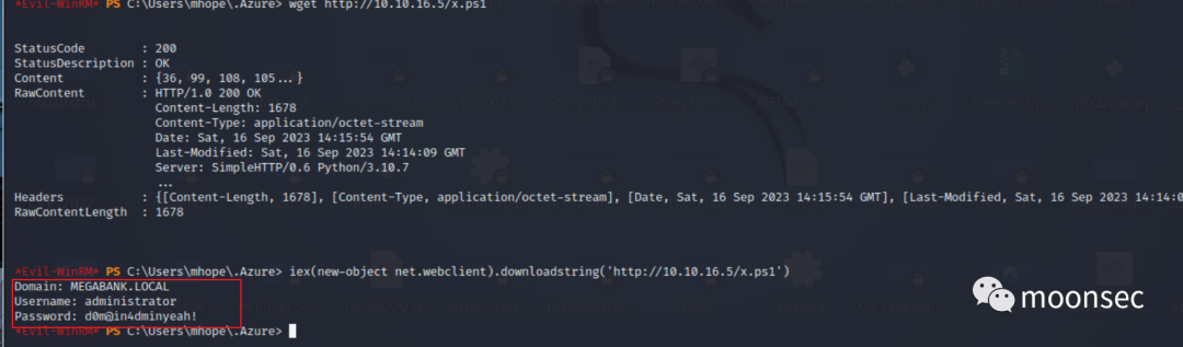 $reader.Close()从本地进行上传脚本,然后远程下载之后,并执行,获取到管理员用户名和密码。