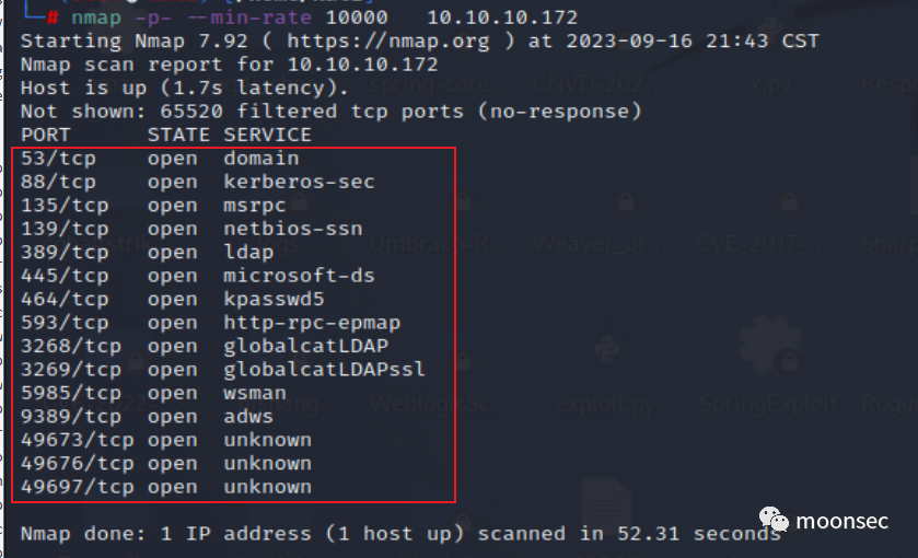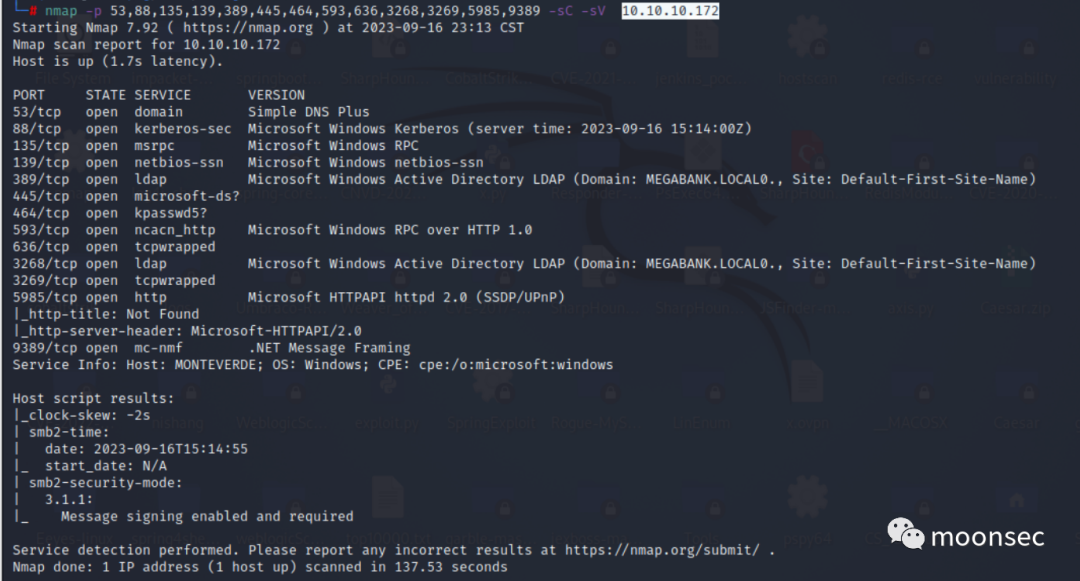 使用nmap去探测端口,发现开放了53,88,139等多个端口。