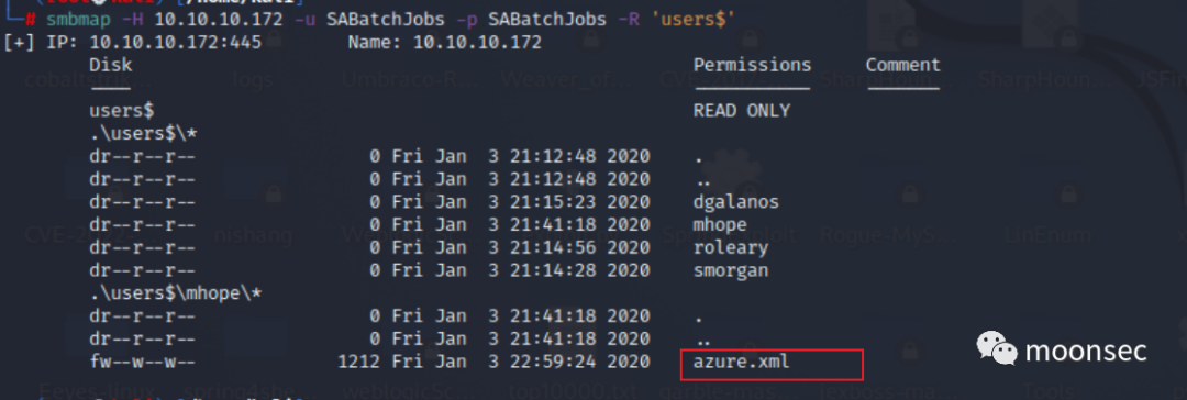 在获取到用户的用户名和登录密码之后,使用smbmap进行读取文件