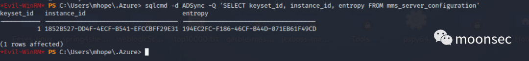 Write-Host "[*] Querying ADSync localdb (mms_server_configuration)"
