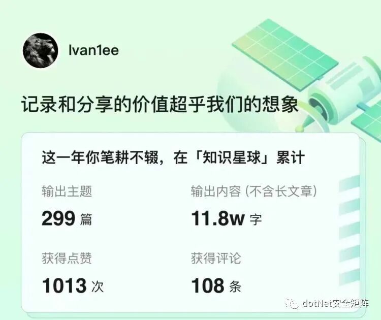 dot.Net安全矩阵星球成为中国.NET安全领域最知名、最活跃的技术知识库之一,如同一本厚重的百科全书,涵盖.NET生态系统中的方方面面。从.NET Core到.NET Framework,从Web应用到PC端软件应用,无论您是初学者还是经验丰富的开发人员,都能在这里找到对应的安全指南和最佳实践。2022年度总结中我们共计输出近300+主题,获得点赞超过1000+。