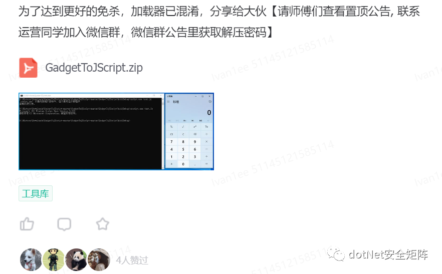 星球汇聚了各行业安全攻防技术大咖,并且每日分享.NET安全技术干货以及交流解答各类技术等问题,社区中发布很多高质量的.NET安全资源,可以说市面上很少见,都是干货。其中主题包括.NET Tricks、漏洞分析、内存马、代码审计、预编译、反序列化、webshell免杀、命令执行、C#工具库等等,后续还会倾力打造专刊、视频等配套学习资源,循序渐进的方式引导加深安全攻防技术提高以及岗位内推等等服务。