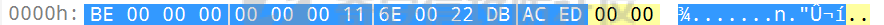以“BE”开头,"ED"结尾,其中包含4个“00”空白填充,进行校验的索引段长度块、数据段长度块各四位,固定长度为14字节。