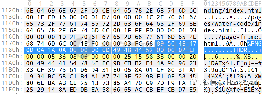 在解密之后,使用010Editor打开该文件,可以看出,wxapkg包由三个部分组成,分别是头部段、索引段、数据段。
