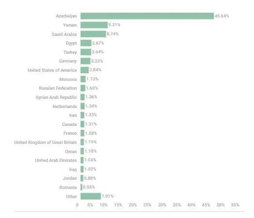 10月5日至31日期间,卡巴斯基安全解决方案在100多个国家发现了34万多次由WhatsApp间谍mod发起的攻击。不过,如果考虑到传播渠道的性质,实际安装数量可能会高得多。攻击次数最多的五个国家是阿塞拜疆、沙特阿拉伯、也门、土耳其和埃及。