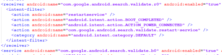 木马化的客户端清单包含在原始WhatsApp客户端中找不到的可疑组件(服务和广播接收器)。广播接收器侦听来自系统和其他应用程序的广播,例如手机开始充电,收到的文本消息或下载程序完成下载;当接收方收到这样的消息时,它调用事件处理程序。在WhatsApp间谍mod中,当手机开机或开始充电时,接收方会运行一项服务,启动间谍mod。