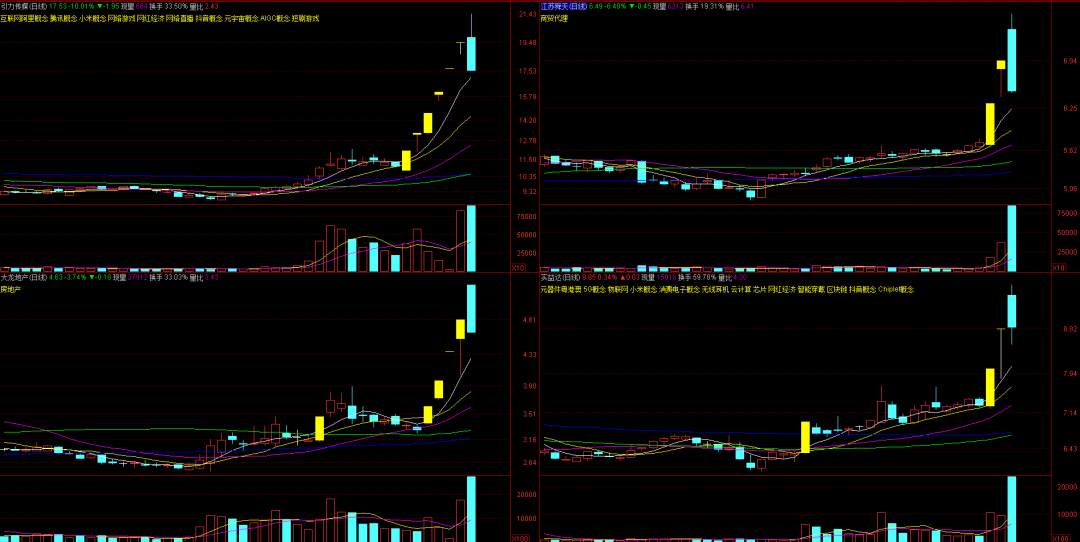 三柏硕奔跌停,圣龙股份并未直接涨而是挑逗跌,引力传媒高兴不过一分钟随即大跳水。