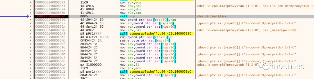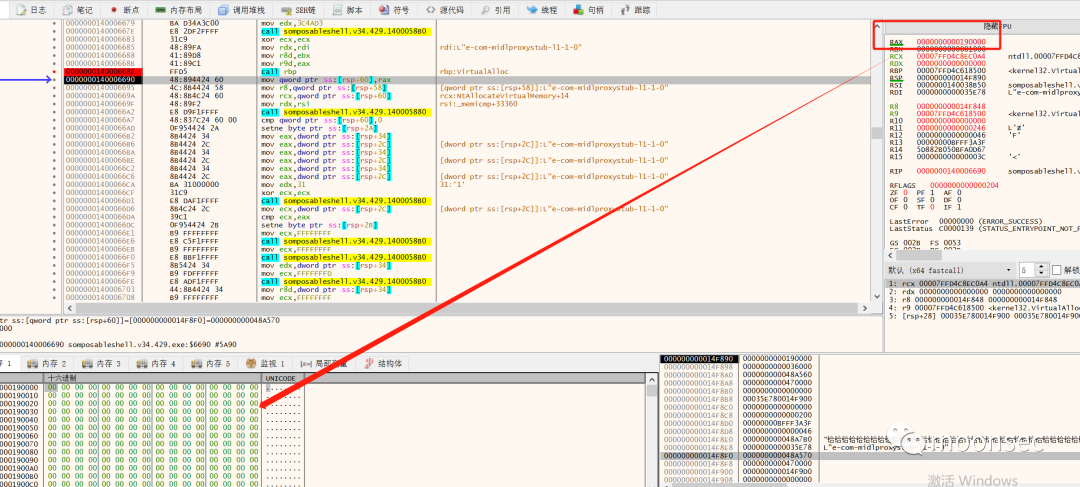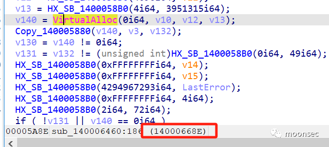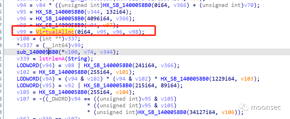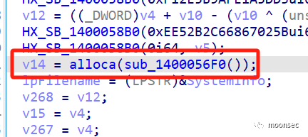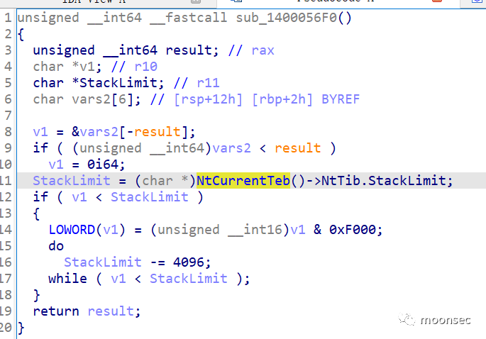 来到他第一个函数,用alloca申请的栈区内存,从函数看到了TEP,利用StackLimit定位线程栈当前最低位置,总体就是V1只要还小于那就一直-=,有啥意义?没啥意义