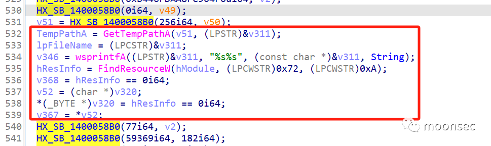 进到函数,发现找系统temp路径,并且获取自定义资源