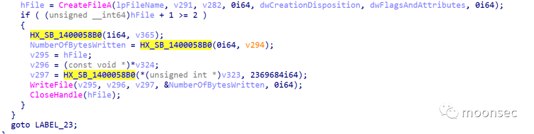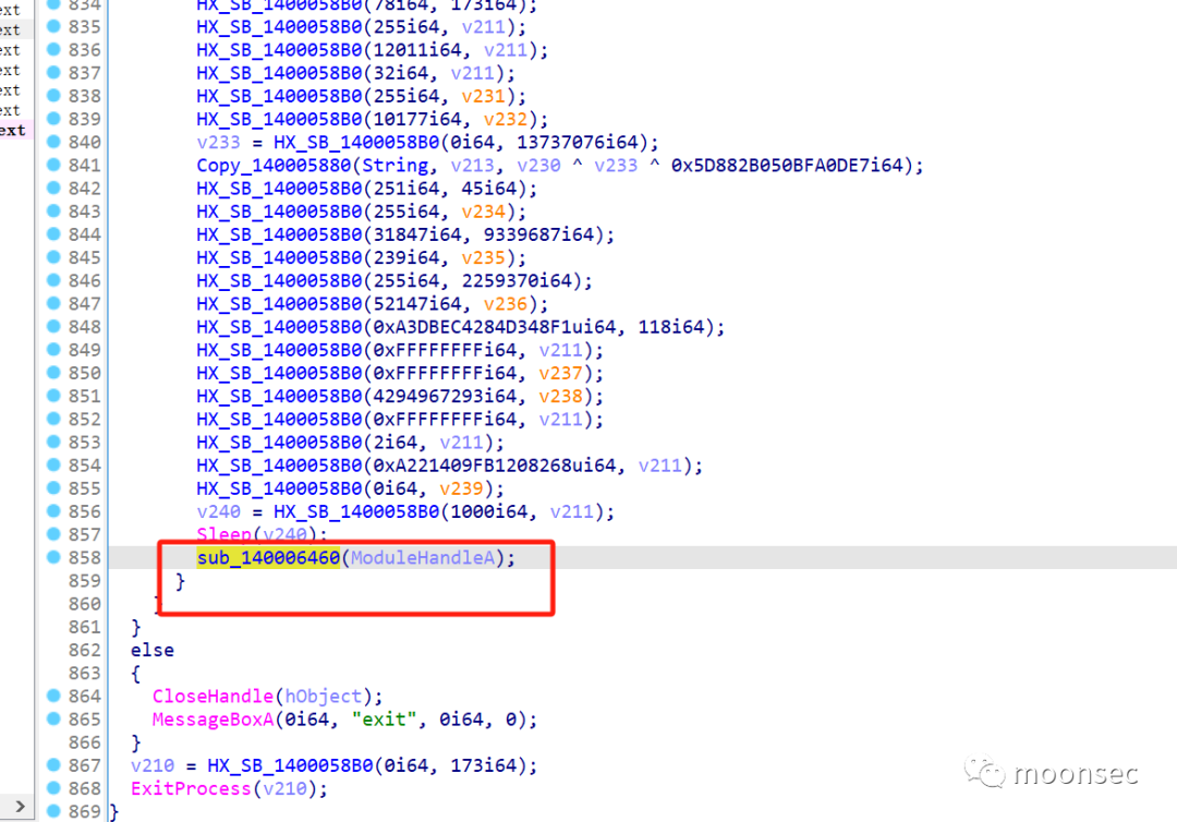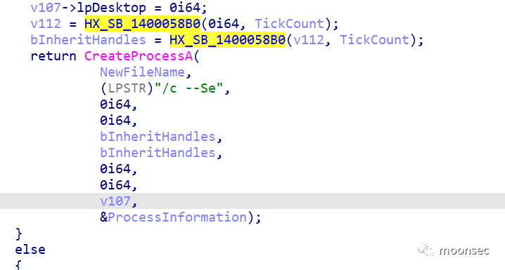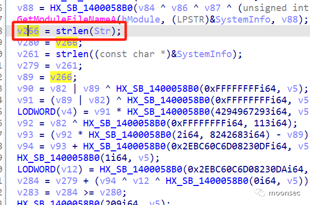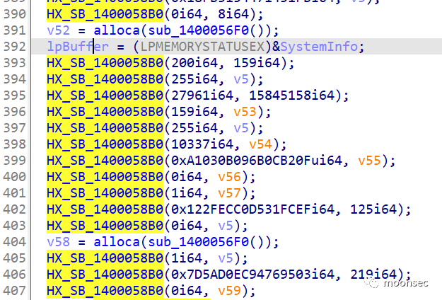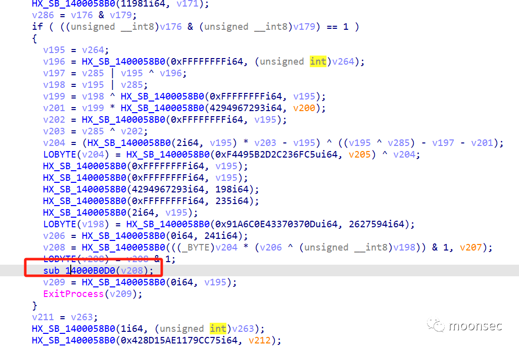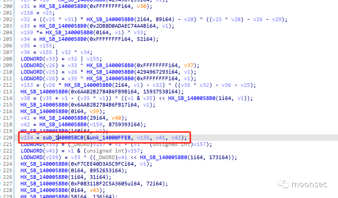 F5来到伪代码查看,黄色标记便是他的混淆了,已经改了名字方便接下来分析了