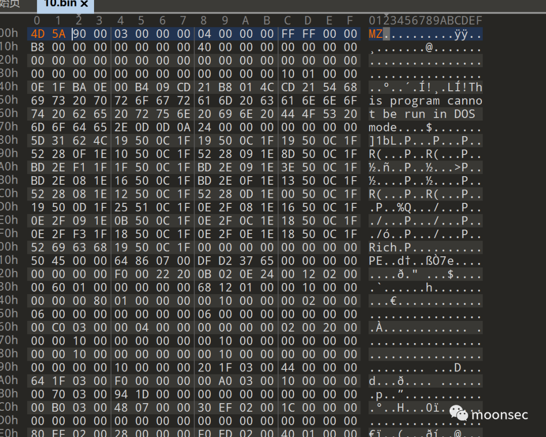 修改文件头变成可执行PE文件方便进行IDA分析功能