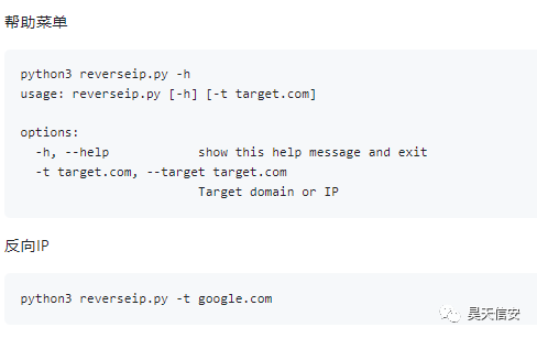 介绍reverseip_py是一款功能强大的IP地址反向查询工具,反向IP是指查找特定IP地址上托管的所有域名的过程。这对于多种原因都很有用,例如识别共享托管服务器上托管的所有网站或找出哪些网站托管在