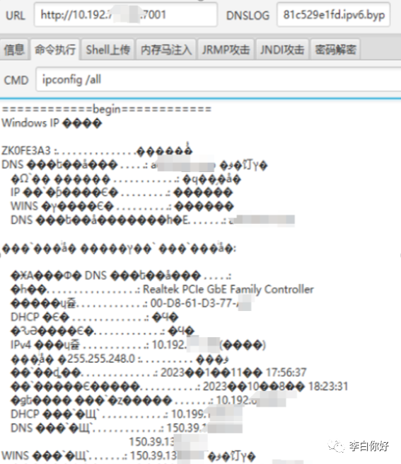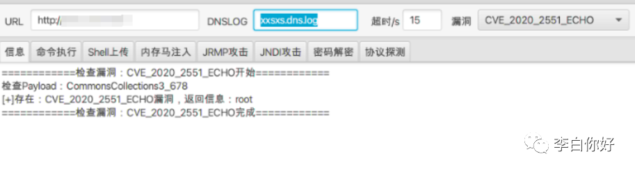 使用漏洞扫描工具,将流量带到内网进行扫描,发现存在历史漏洞,且可以执行命令: