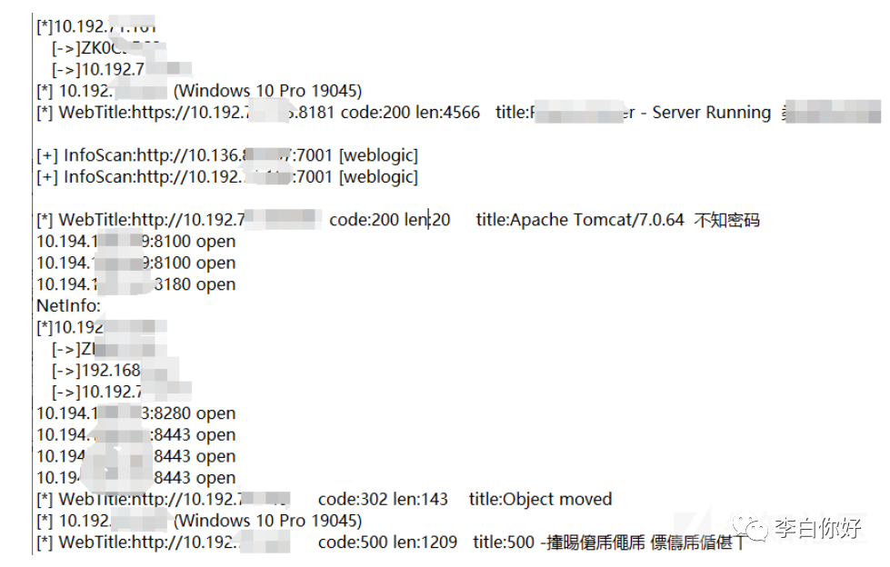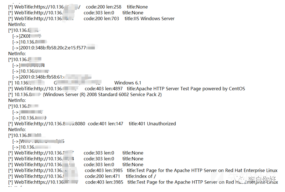 扫完存活网段后,将结果作为信息收集工具的目标,例如fscan制定hf参数,即可根据结果文件中的目标地址展开信息收集: