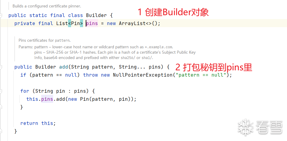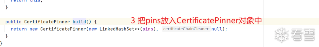 CertificatePinner buildPinner = new CertificatePinner.Builder().add(CA_DOMAIN, CA_PUBLIC_KEY).build();//将buildPinner 传给OkHttpclientOkHttpClient client = new OkHttpClient.Builder().certificatePinner(buildPinner).build();